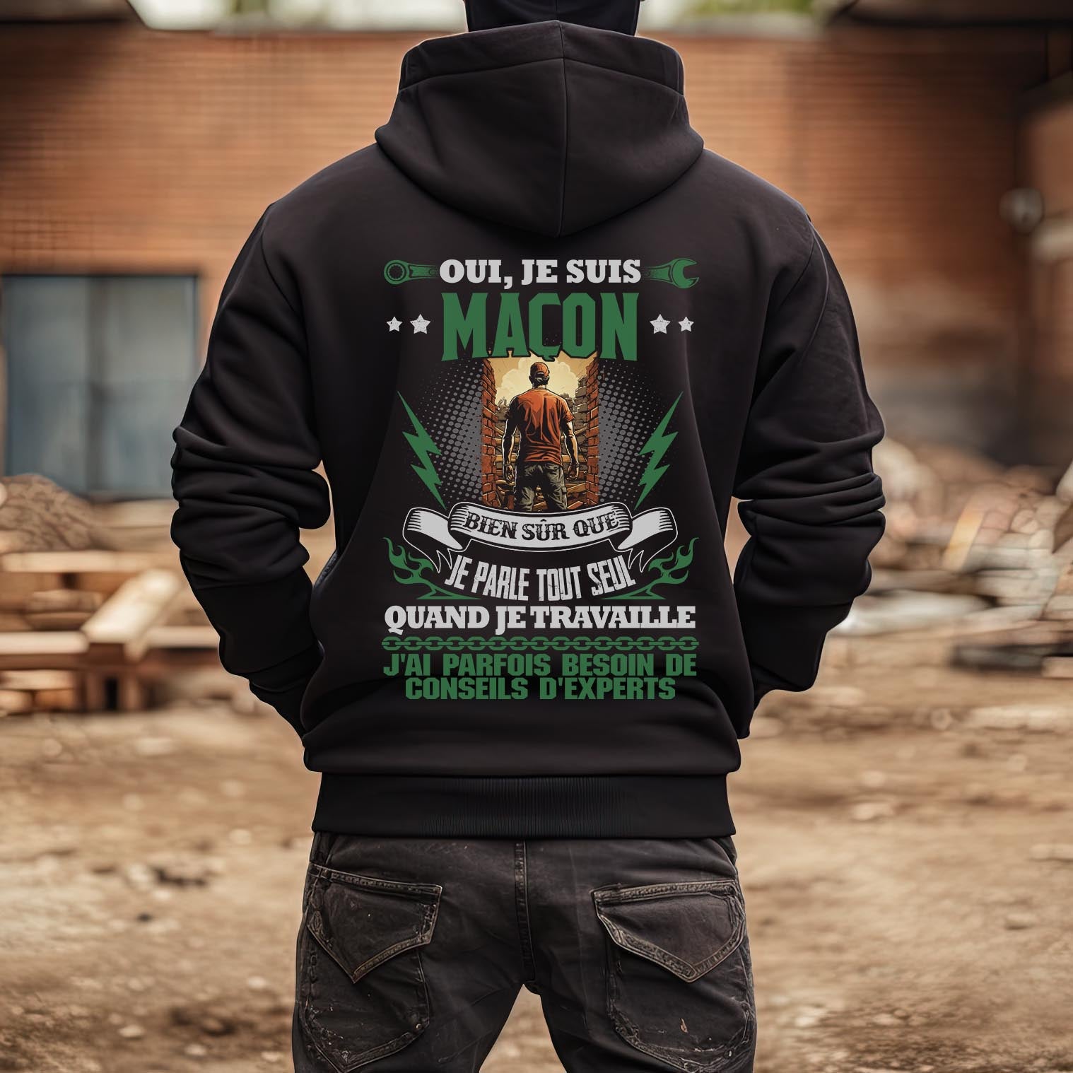 Affichez votre fierté au travail avec ce t-shirt de maçon amusant et accrocheur ! Ce t-shirt confortable de haute qualité arbore le message « Oui, je suis Maçon. Bien sûr que je parle tout seul quand je travaille. J'ai parfois besoin de conseils d'experts. » dans une police audacieuse et moderne. C'est la manière parfaite d'exprimer votre amour pour votre métier et votre engagement envers le dur labeur.
