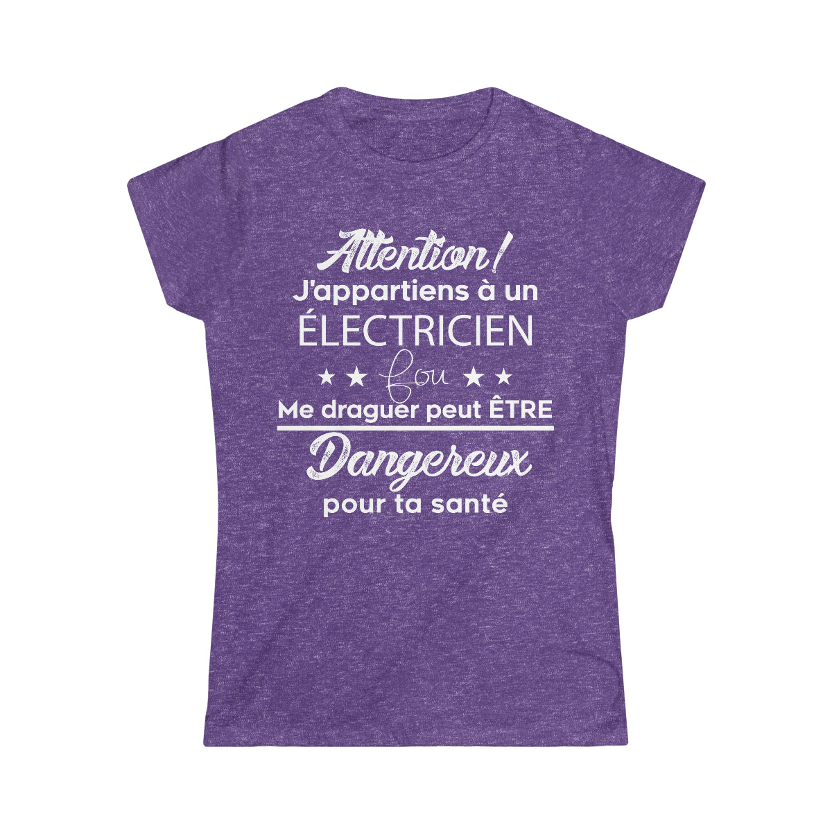 Découvrez notre t-shirt et sweat à capuche spécialement conçu pour les compagnes et épouses des électriciens, en hommage à la précision et à l'expertise de ce métier essentiel. Portant le message "J'appartiens à un Électricien fou me draguer peut être dangereux pour ta santé", ce vêtement célèbre l'importance et le dévouement des électriciens, ainsi que le soutien indéfectible de leurs partenaires.