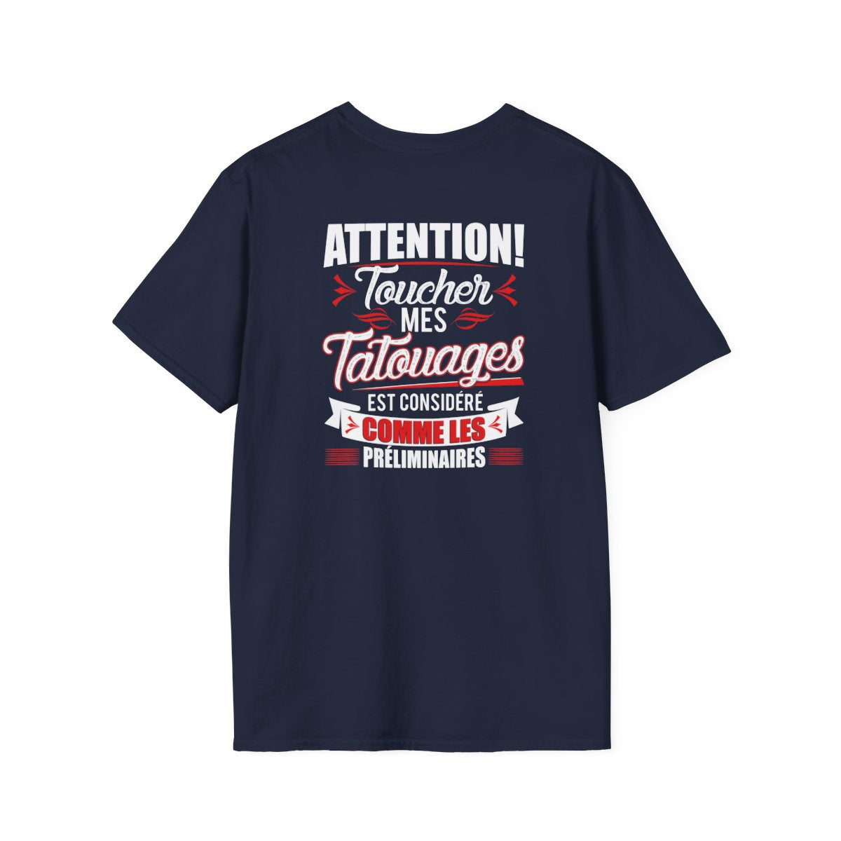 Exprimez votre fierté avec notre T-shirt et hoodie exclusifs. Imprimé avec le message audacieux "Attention! Toucher mes tatouages est considéré comme les préliminaires", chaque pièce célèbre votre individualité. Fabriqués avec soin pour un confort optimal, nos vêtements sont parfaits pour les hommes tatoués qui affirment leur style avec assurance.