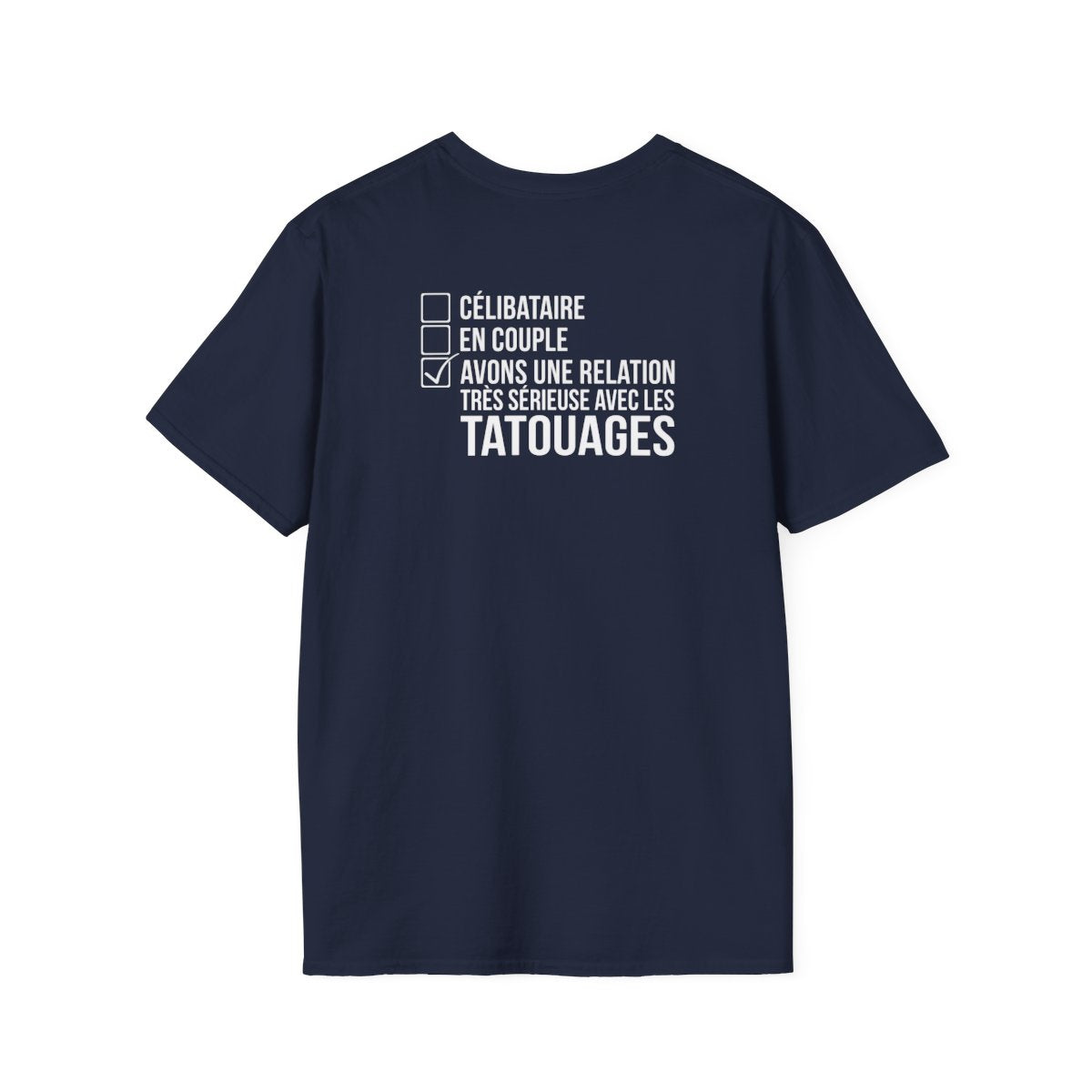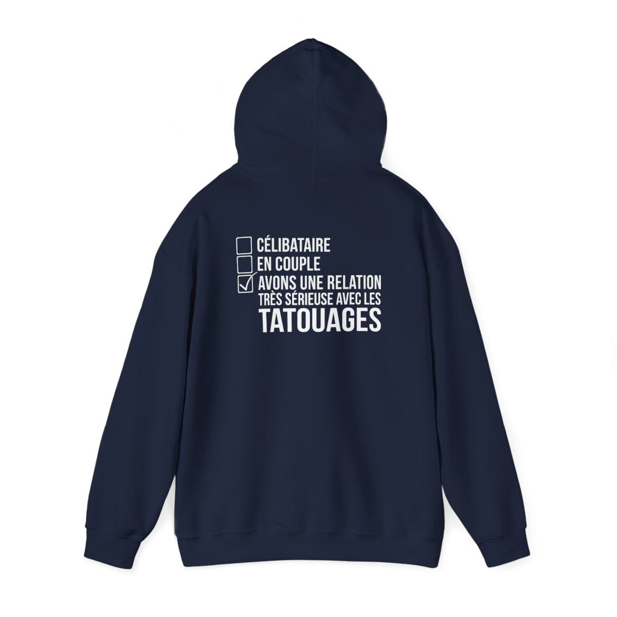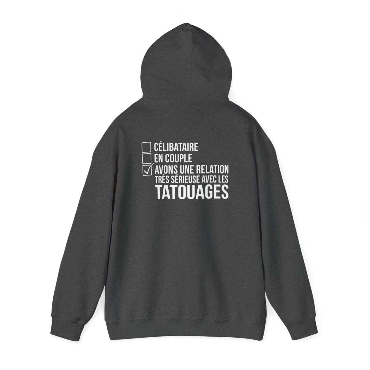 Exprimez votre fierté avec notre T-shirt et hoodie exclusifs. Imprimé avec le message audacieux "Avons une relation très sérieuse avec les tatouages", chaque pièce célèbre votre individualité. Fabriqués avec soin pour un confort optimal, nos vêtements sont parfaits pour les hommes tatoués qui affirment leur style avec assurance.