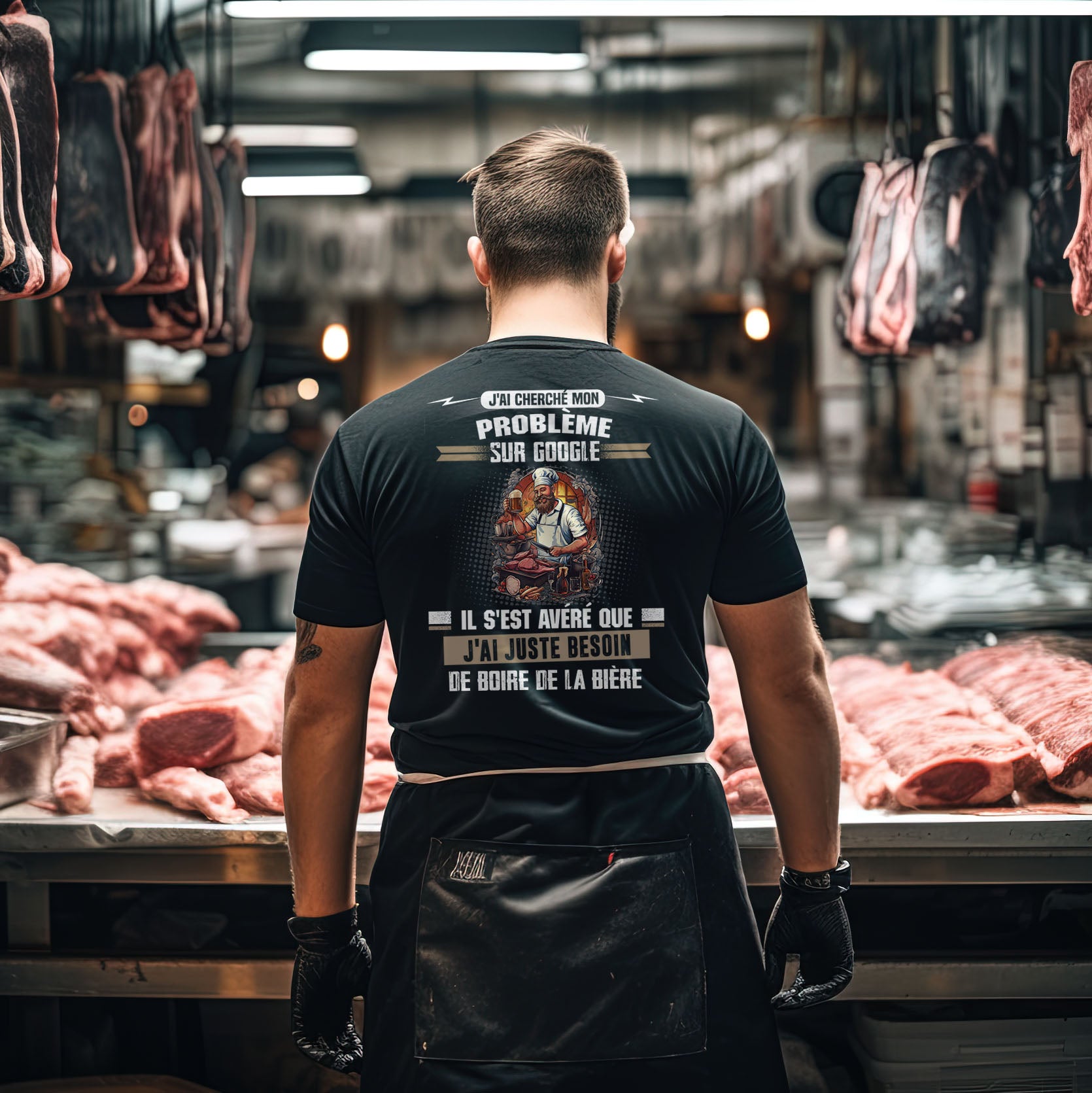 Ce t-shirt arbore le message audacieux "J'ai cherché mon problème sur google, il s'est avéré que j'ai juste besoin de boire de la bière", parfait pour tout boucher passionné par son travail et qui apprécie une bière bien fraîche après une longue journée. Que vous découpiez de la viande, fassiez des saucisses ou serviez de délicieux repas, ce t-shirt est le moyen parfait de montrer votre fierté d'être un boucher et votre amour pour la bière.