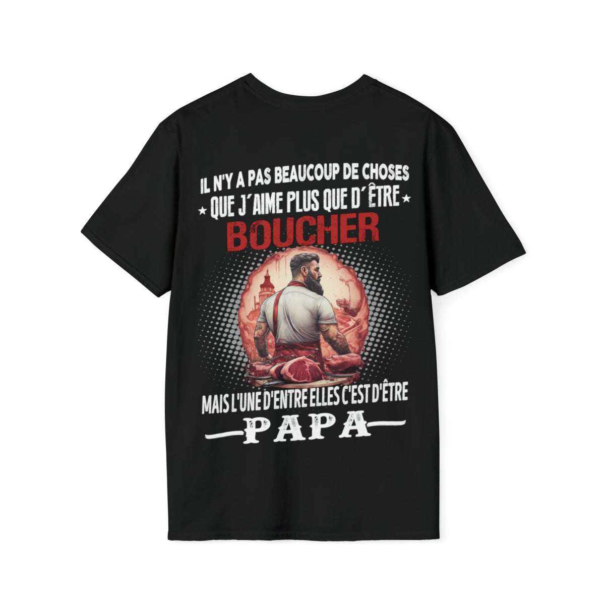 Affichez votre fierté pour votre métier avec ce t-shirt de boucher amusant et accrocheur ! Ce t-shirt confortable de haute qualité arbore le message « Il n'y a pas beaucoup de choses que j'aime plus que d'être Boucher, mais l'une d'entre elles c'est d'être papa. » dans une police audacieuse et moderne. C'est le moyen parfait d'exprimer votre amour pour votre travail et votre engagement à fournir de la viande fraîche et délicieuse à vos clients.