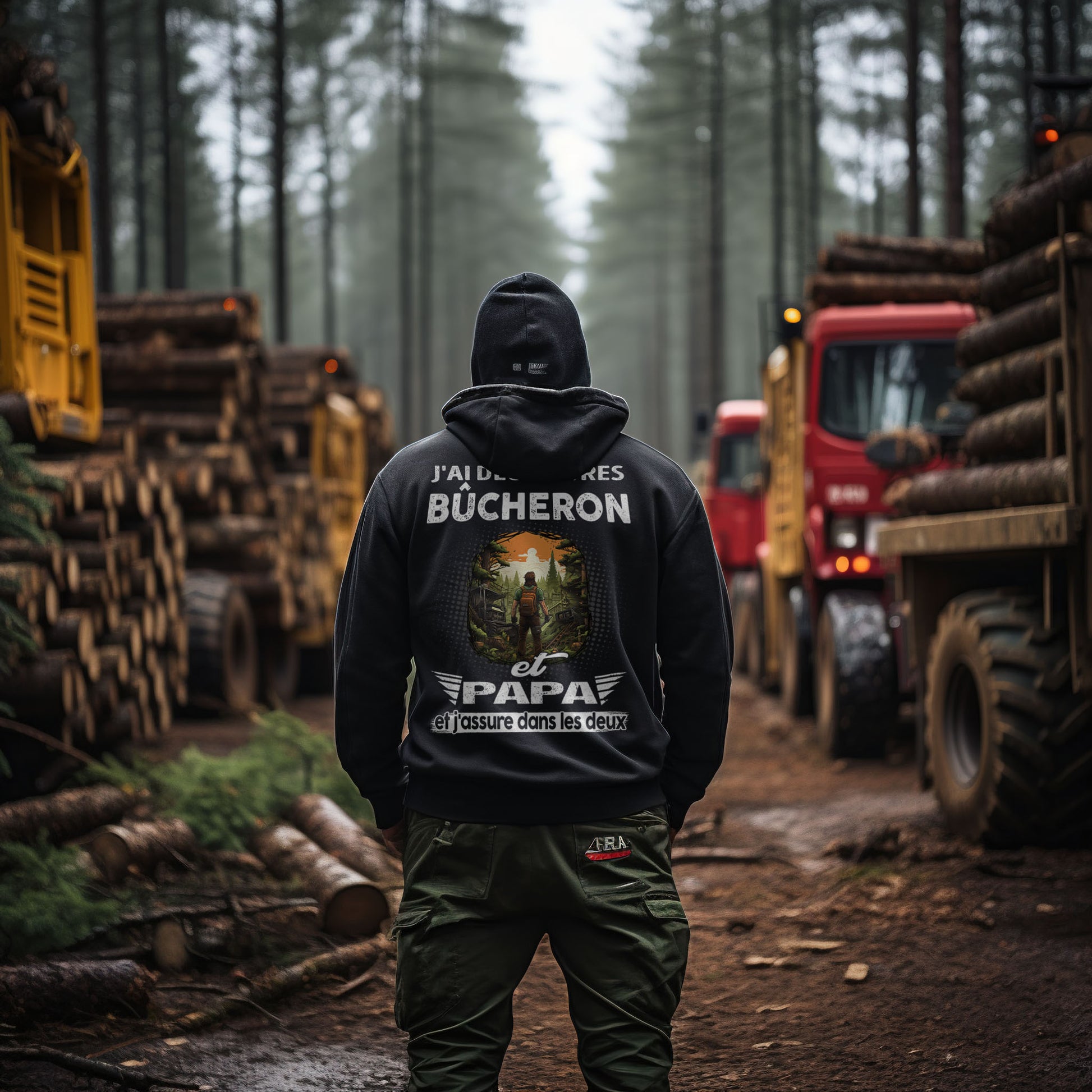 Ce t-shirt arbore le message audacieux "J'ai deux titres : Bûcheron et papa, et j'assure dans les deux.", parfait pour tout bûcheron passionné par son métier. Que vous abattiez des arbres, coupiez du bois ou travailliez dans une scierie, ce t-shirt est le moyen parfait d'exprimer votre fierté d'être bûcheron.