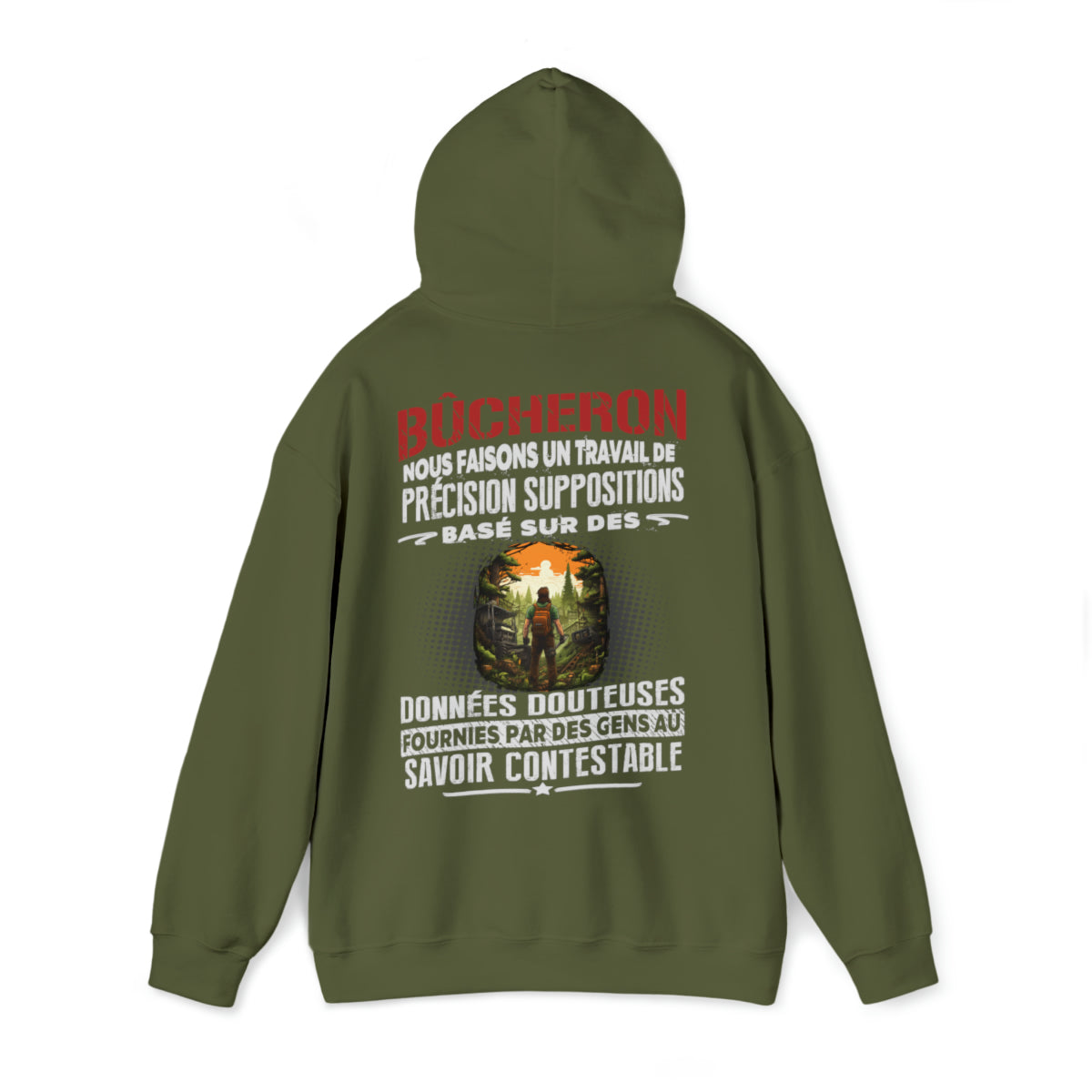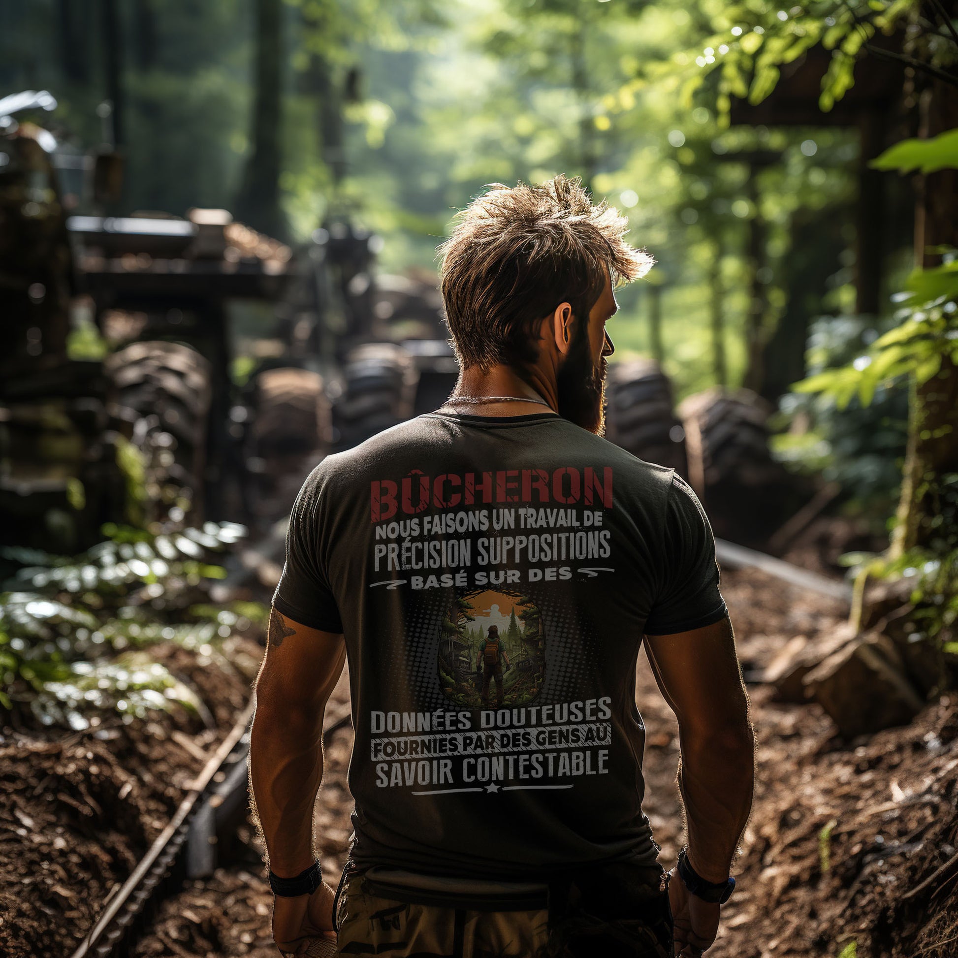 Ce t-shirt arbore le message audacieux "Bûcheron, nous faisons un travail de précision basé sur des données douteuses fournies par des gens au savoir contestable.", parfait pour tout bûcheron passionné par son métier. Que vous abattiez des arbres, coupiez du bois ou travailliez dans une scierie, ce t-shirt est le moyen parfait d'exprimer votre fierté d'être bûcheron.