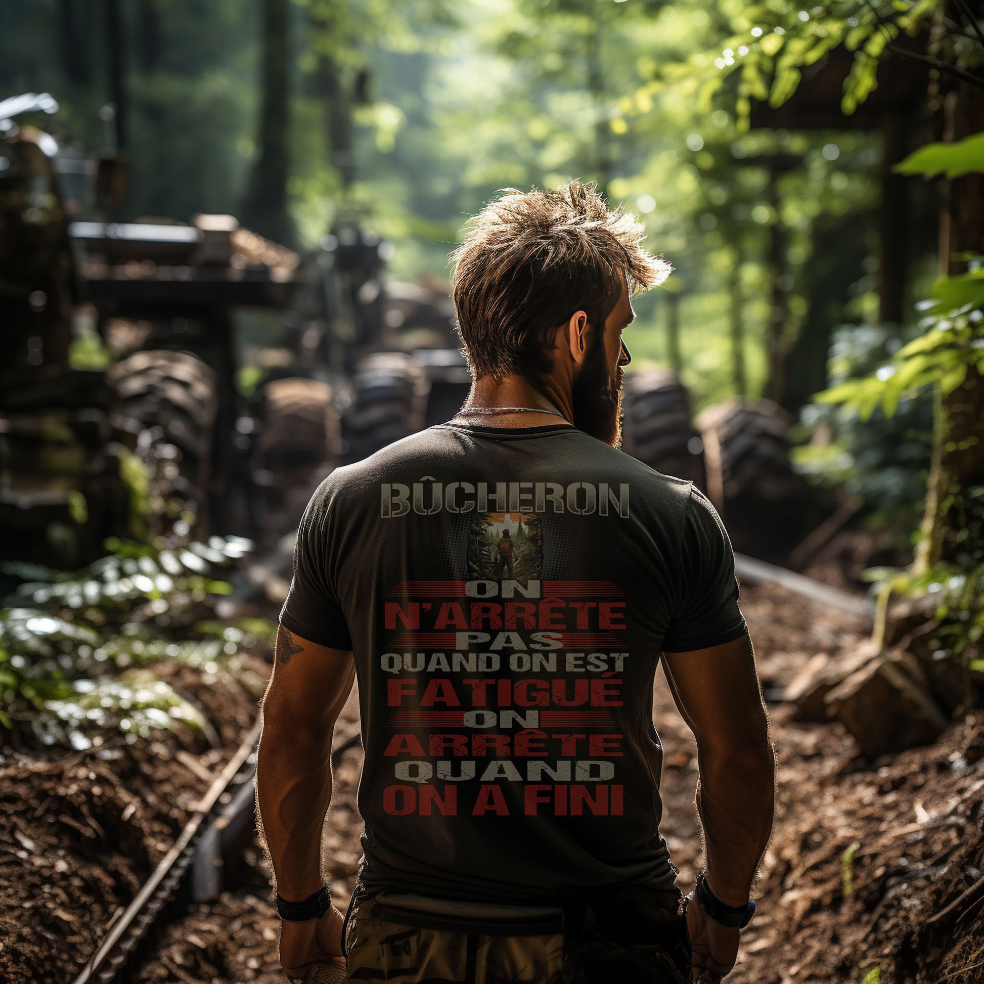 Ce t-shirt arbore le message audacieux "Bûcheron, on n'arrête pas quand on est fatigué, on arrête quand on a fini.", parfait pour tout bûcheron passionné par son métier. Que vous abattiez des arbres, coupiez du bois ou travailliez dans une scierie, ce t-shirt est le moyen parfait d'exprimer votre fierté d'être bûcheron.
