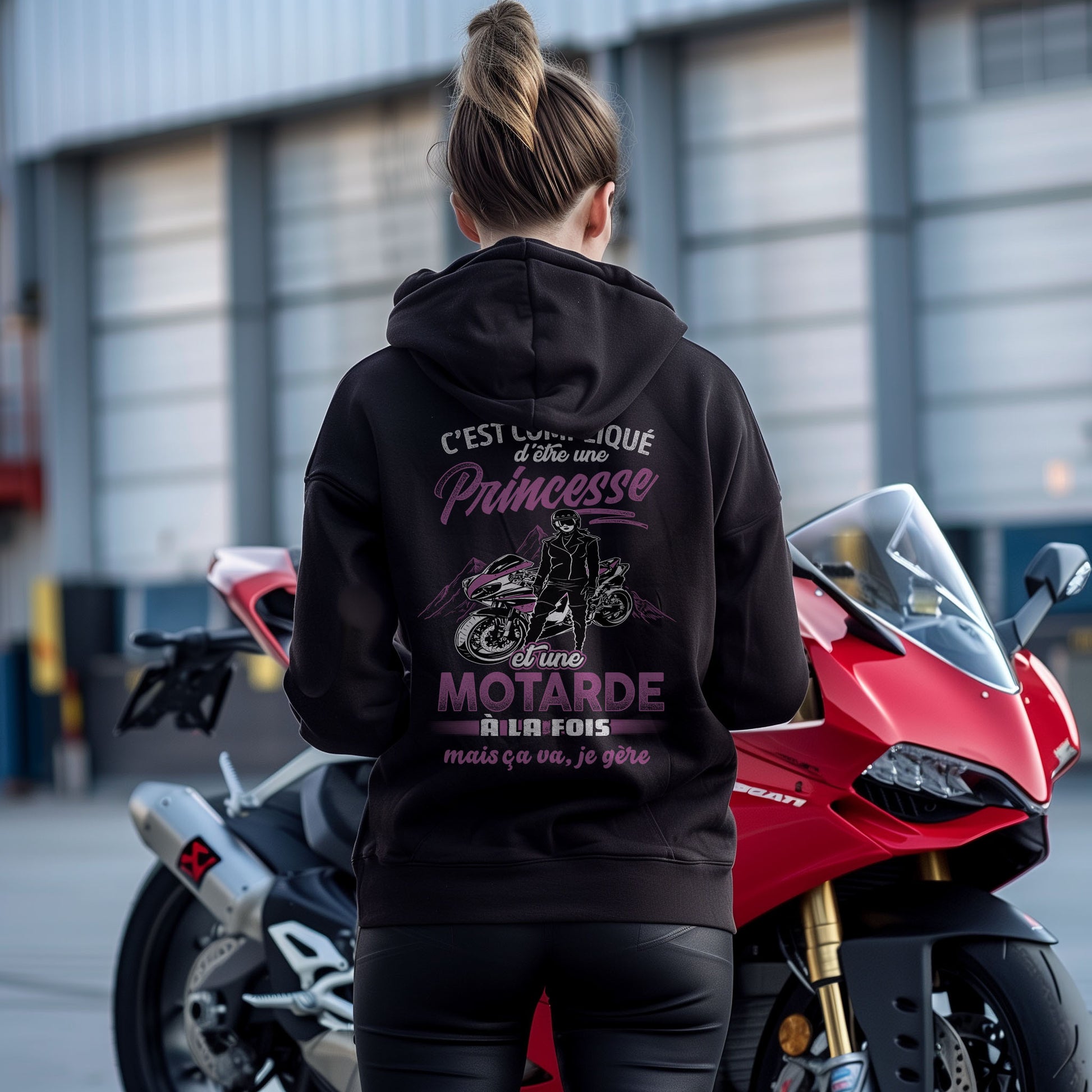 En portant notre slogan "C’est compliqué d’être une Princesse et une Motarde à la fois, mais ça va, je gère", vous affirmez non seulement votre amour pour la moto, mais aussi votre engagement envers une communauté soudée et dynamique. Nos vêtements, spécialement conçus pour offrir confort et résistance, vous accompagnent dans toutes vos explorations, des virées en ville aux longs road trips à travers le pays.