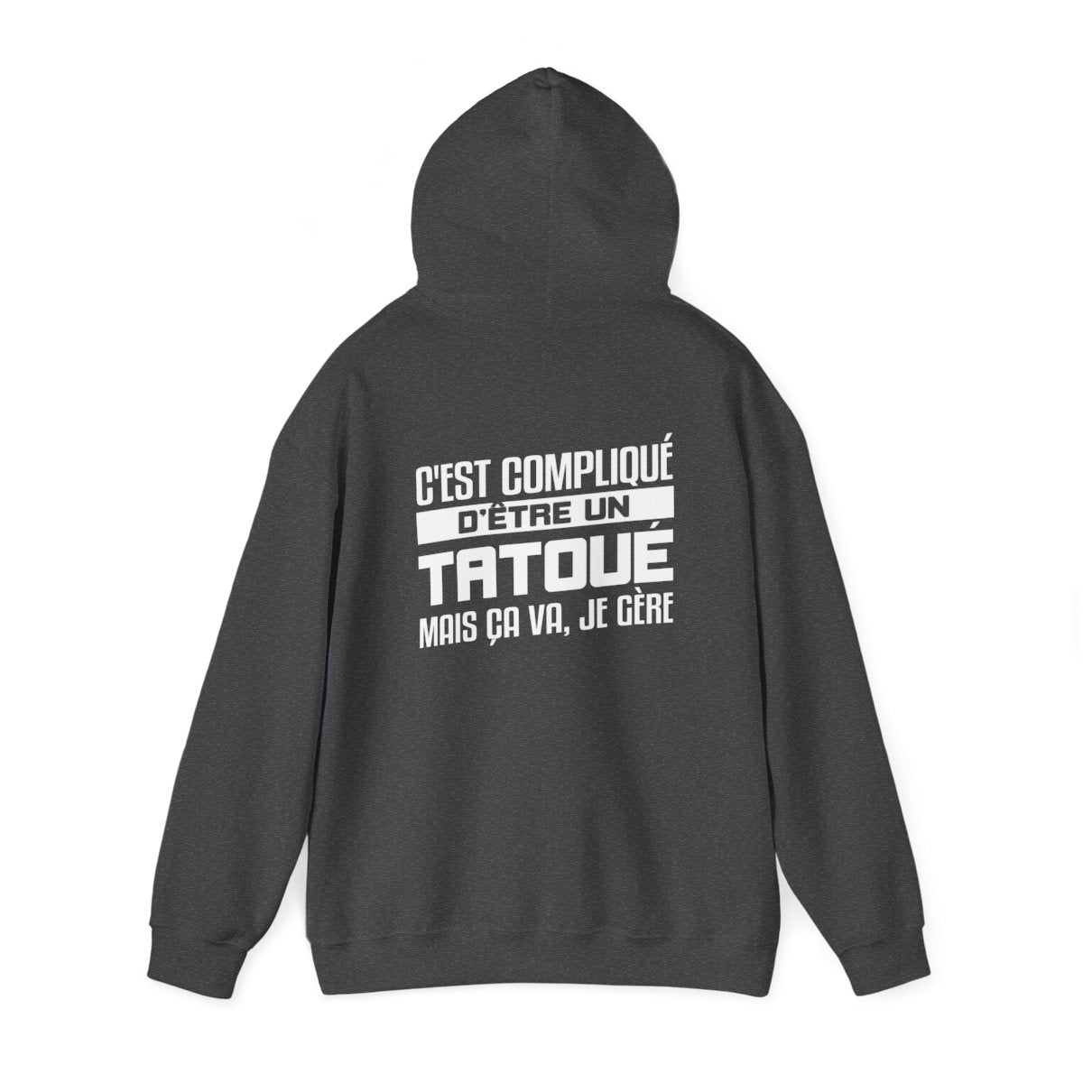 Exprimez votre fierté avec notre T-shirt et hoodie exclusifs. Imprimé avec le message audacieux "C'est compliqué d'être un tatoué, mais ça va je gère", chaque pièce célèbre votre individualité. Fabriqués avec soin pour un confort optimal, nos vêtements sont parfaits pour les hommes tatoués qui affirment leur style avec assurance.