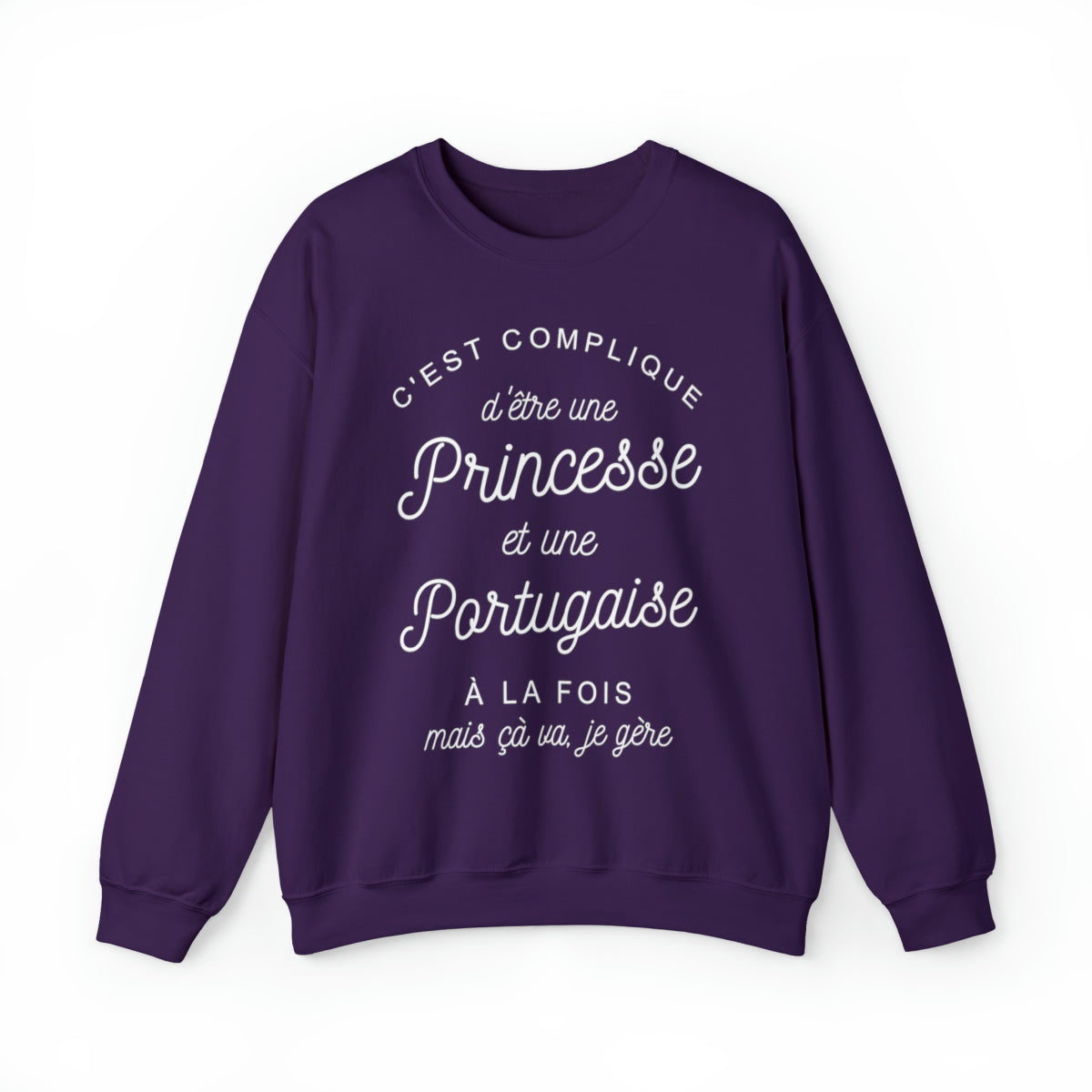 Soyez l'incarnation de la fierté lusitanienne avec notre t-shirt à message conçu pour les femmes portugaises qui font rayonner leur culture en France. Avec l'inscription pleine de verve "C'est complique d'être une princesse et une Portugaise à la fois mais çà va je gère", ce t-shirt est un hommage à la force et à la joie de vivre que vous apportez dans l'Hexagone.
