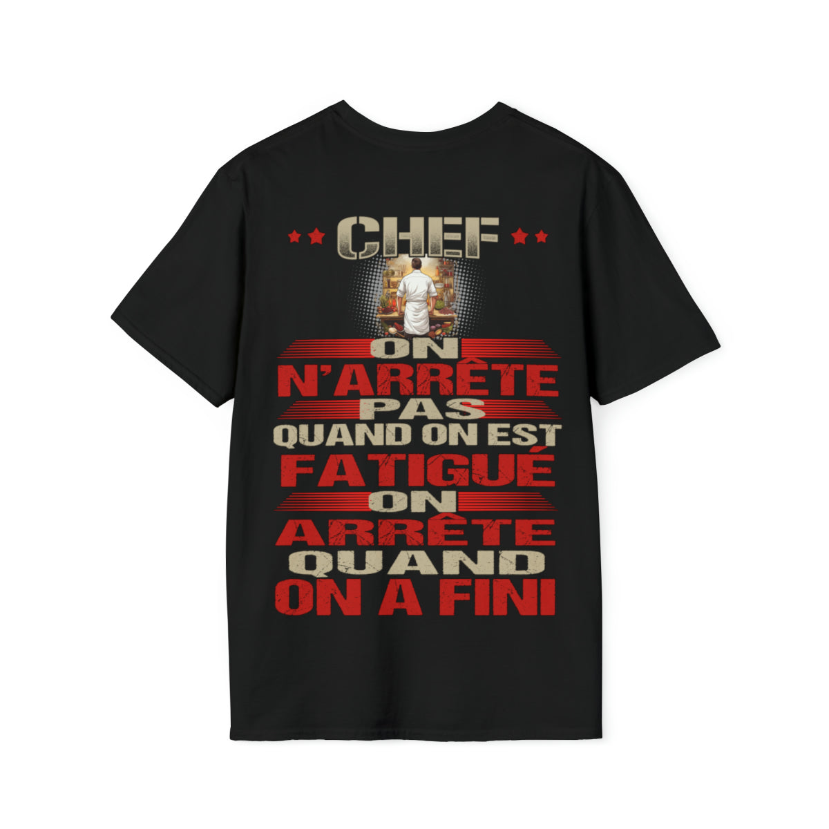 Le message sur le t-shirt est simple mais efficace : "Je suis chef et j'en suis fier." C'est une excellente manière de montrer votre amour pour votre métier et de faire savoir aux autres que vous avez confiance en vos compétences.