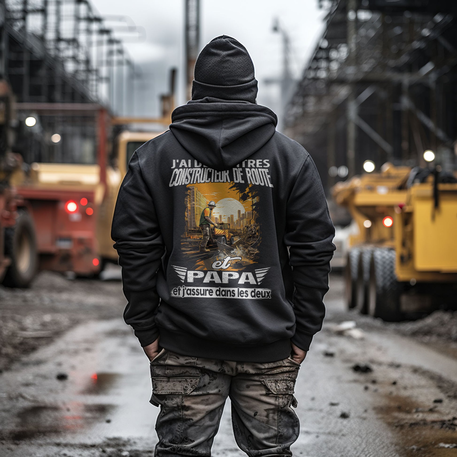 Ce t-shirt arbore le message audacieux "J'ai deux titres : Constructeur de Route et papa, et j'assure dans les deux.", parfait pour tout constructeur de route passionné par son métier. Que vous construisiez de nouvelles routes, répariez les anciennes ou veilliez à la sécurité et à la propreté de nos routes, ce t-shirt est le moyen parfait d'exprimer votre fierté d'être constructeur de route.