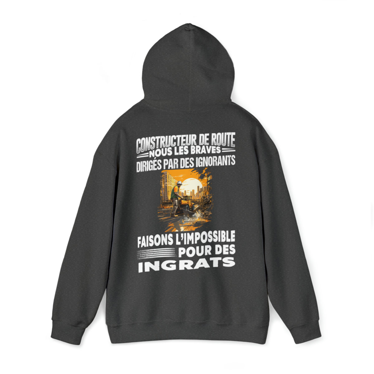 Ce t-shirt arbore le message audacieux "Constructeur de Route, les braves dirigés par des ignorants font l'impossible pour des ingrats.", parfait pour tout constructeur de route passionné par son métier. Que vous construisiez de nouvelles routes, répariez les anciennes ou veilliez à la sécurité et à la propreté de nos routes, ce t-shirt est le moyen parfait d'exprimer votre fierté d'être constructeur de route.