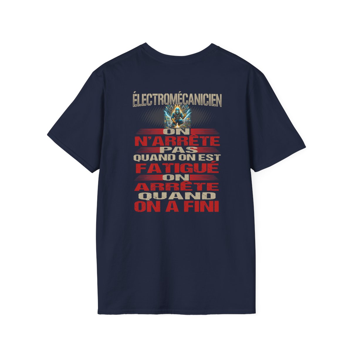 Ce t-shirt et ce hoodie sont spécialement conçus pour les passionnés d'électromécanique. Arborant fièrement le message "Électromécanicien, on n'arrête pas quand on est fatigué, on arrête quand on a fini.", ces vêtements reflètent votre amour pour un domaine qui allie habilement technologie et ingénierie. Fabriqués dans un tissu de qualité, confortable et durable, ils sont parfaits pour le travail quotidien en atelier ou pour une utilisation décontractée.