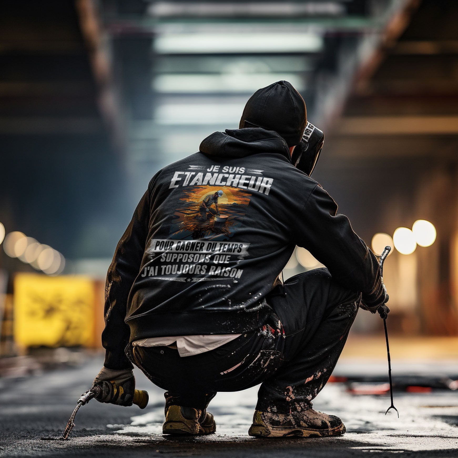 Découvrez le t-shirt conçu spécialement pour les étancheurs qui portent leur profession avec fierté et passion. Confectionné pour refléter l'excellence et la détermination qui caractérisent les spécialistes de l'étanchéité, ce t-shirt arbore fièrement le slogan : "Je suis Etancheur, chiant, grande gueule, un sale caractère, et je t'emmerde."