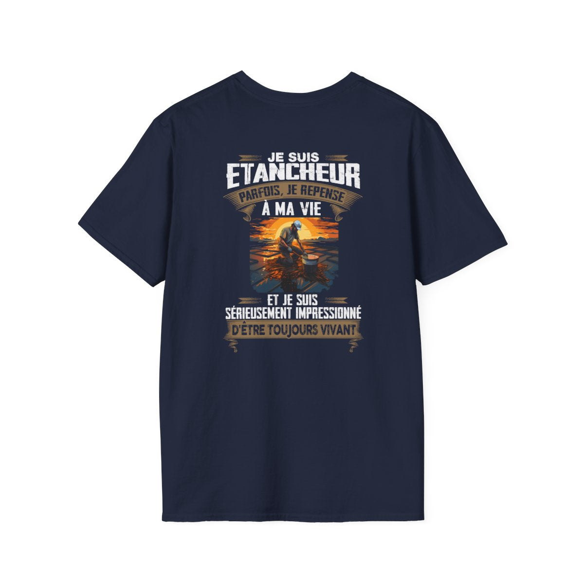Découvrez le t-shirt conçu spécialement pour les étancheurs qui portent leur profession avec fierté et passion. Confectionné pour refléter l'excellence et la détermination qui caractérisent les spécialistes de l'étanchéité, ce t-shirt arbore fièrement le slogan : "Je suis Etancheur parfois, je repense à ma vie et je suis sérieusement impressionné d'être toujours vivant"
