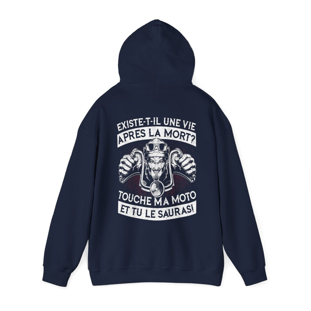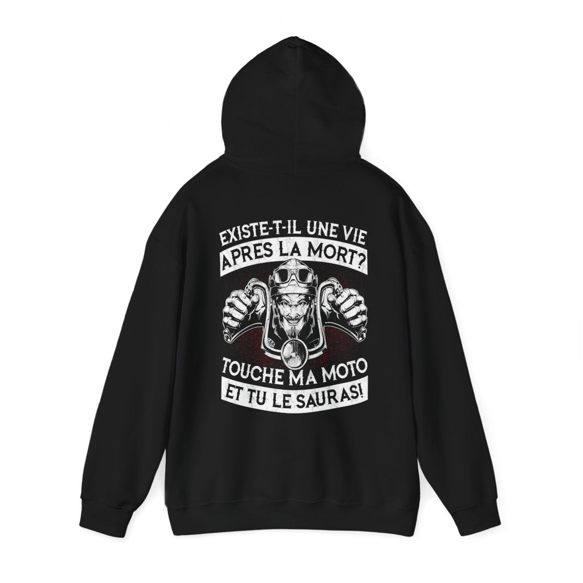 Nos vêtements sont fabriqués avec des matériaux de haute qualité, assurant confort et durabilité, même lors des longues balades sous le soleil ou à travers le vent frais. Le slogan "Existe-t-il une vie après la mort ? Touche ma moto et tu le sauras" est fièrement affiché, capturant l'essence de votre passion. Que vous soyez au guidon de votre moto ou que vous partagiez un moment entre amis, notre collection vous accompagne dans chaque aventure, symbolisant votre amour pour la liberté et l'aventure sur deux roues.