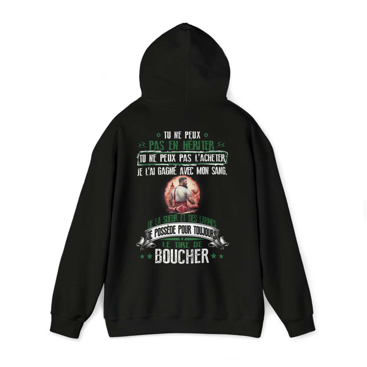 Affichez votre fierté pour votre métier avec ce t-shirt de boucher amusant et accrocheur ! Ce t-shirt confortable de haute qualité arbore le message « Tu ne peux pas en hériter, tu ne peux pas l'acheter. Je l'ai gagné avec mon sang, de la sueur et des larmes. Je possède pour toujours le titre de Boucher. » dans une police audacieuse et moderne. C'est le moyen parfait d'exprimer votre amour pour votre travail et votre engagement à fournir de la viande fraîche et délicieuse à vos clients.
