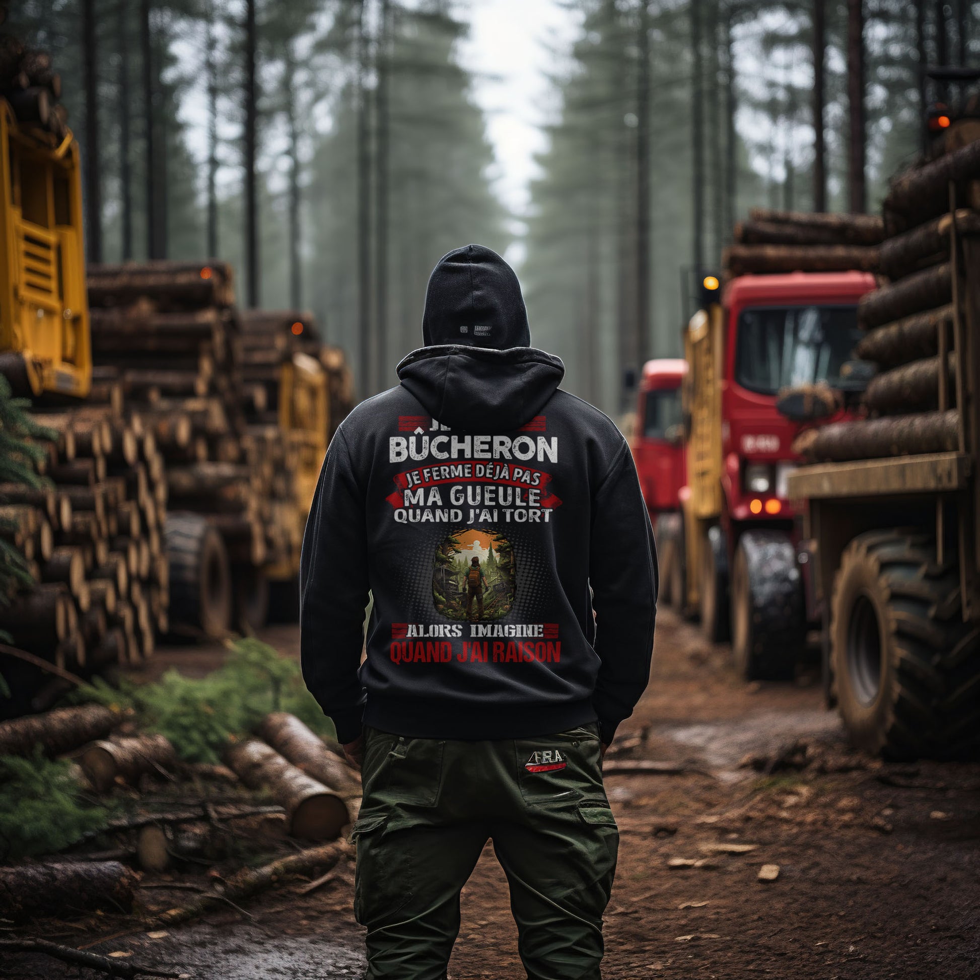 Ce t-shirt arbore le message audacieux "Je suis Bûcheron, je ne ferme déjà pas ma gueule quand j'ai tort, alors imagine quand j'ai raison.", parfait pour tout bûcheron passionné par son métier. Que vous abattiez des arbres, coupiez du bois ou travailliez dans une scierie, ce t-shirt est le moyen parfait d'exprimer votre fierté d'être bûcheron.