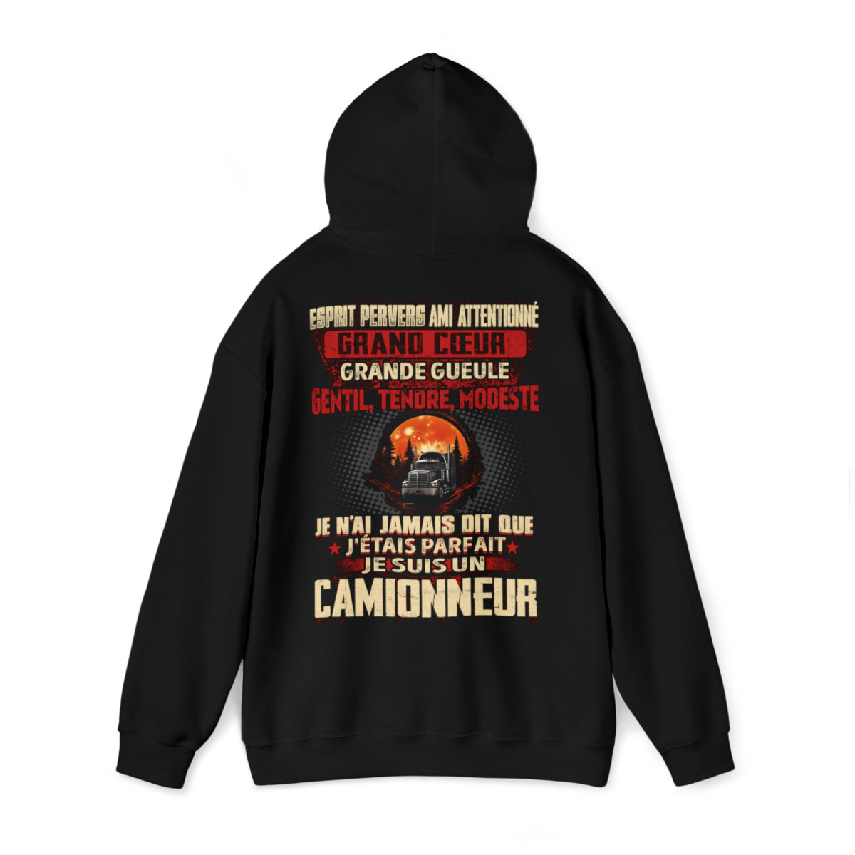 Ce t-shirt arbore le message audacieux "Esprit pervers, ami attentionné, grand cœur, grande gueule, gentil, tendre, modeste. Je n'ai jamais dit que j'étais parfait, je suis un Camionneur", parfait pour tout camionneur passionné par son métier. Que vous transportiez des marchandises à travers le pays ou que vous livriez des colis à votre communauté locale, ce t-shirt est le moyen parfait d'exprimer votre fierté d'être camionneur.