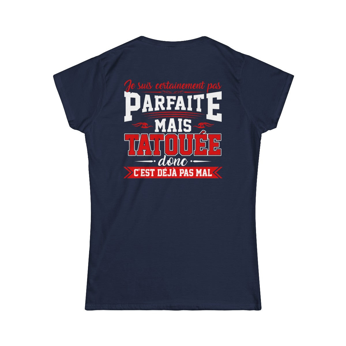 Affirmez votre fierté tatouée avec notre t-shirt exclusif arborant le message "Je suis certainement pas parfaite mais tatouée donc c'est déjà pas mal". Conçu pour les femmes qui célèbrent leur individualité, ce t-shirt allie confort et style, vous permettant d'afficher votre amour pour l'art corporel avec audace. Fabriqué avec des matériaux de qualité supérieure, ce t-shirt vous offre un ajustement parfait tout en mettant en valeur votre personnalité unique.