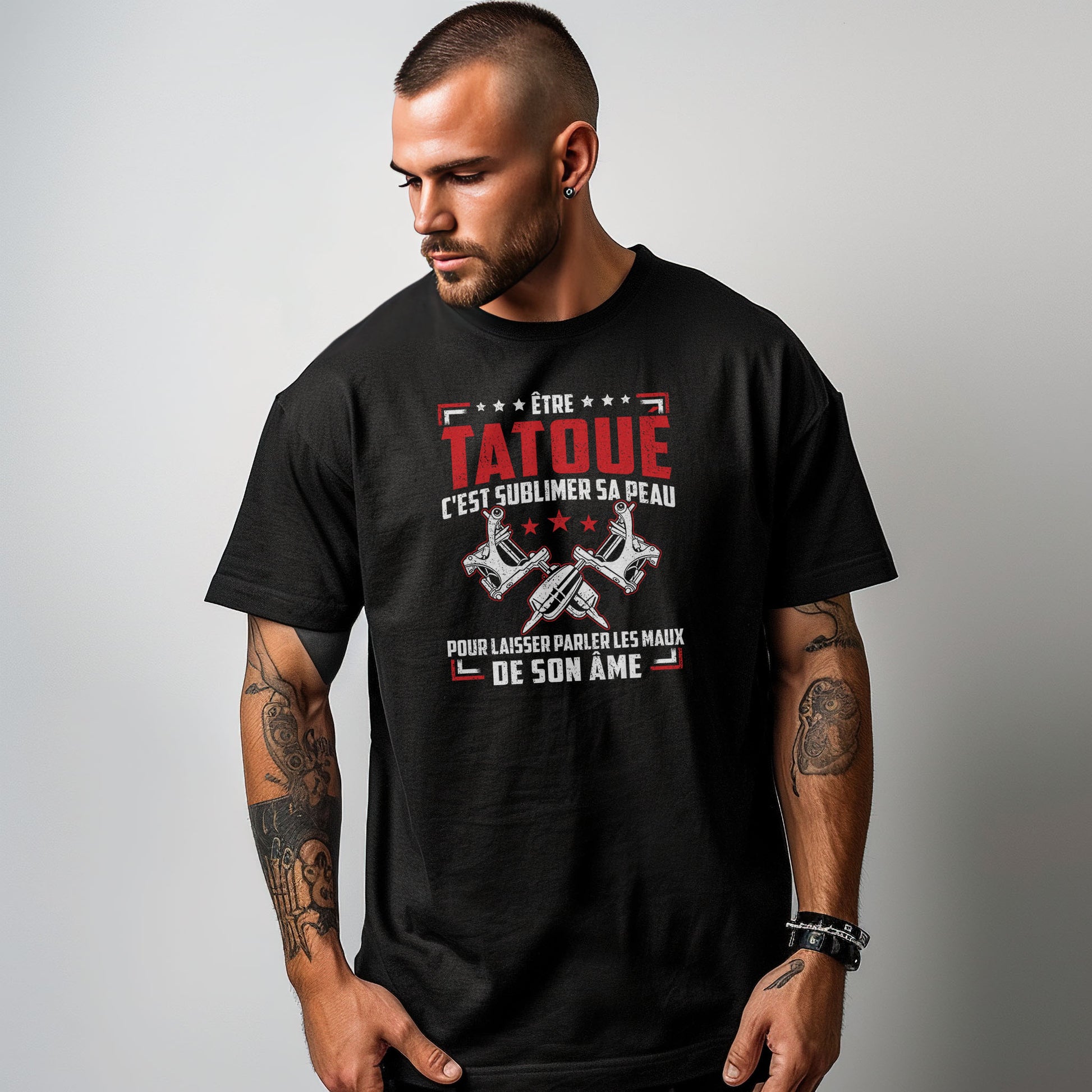 Exprimez votre style unique avec ce t-shirt pour hommes spécialement conçu pour les amateurs de tatouages. Arborant un design audacieux qui met en valeur l'art corporel, ce t-shirt est le choix parfait pour ceux qui vivent et respirent la culture du tatouage. Fait d'un coton doux et respirant, il assure un confort optimal tout au long de la journée. Que vous soyez un passionné de tatouages ou que vous souhaitiez simplement afficher votre côté rebelle, ce t-shirt est un incontournable. Je suis tatoué c'est à dire que je suis parfait mais pas tout le temps