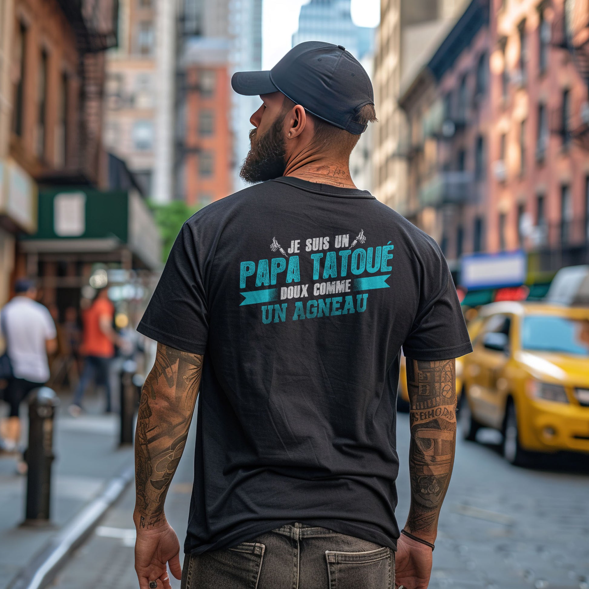Exprimez votre fierté avec notre T-shirt et hoodie exclusifs. Imprimé avec le message audacieux "Je suis un papa tatoué doux comme un agneau", chaque pièce célèbre votre individualité. Fabriqués avec soin pour un confort optimal, nos vêtements sont parfaits pour les hommes tatoués qui affirment leur style avec assurance.