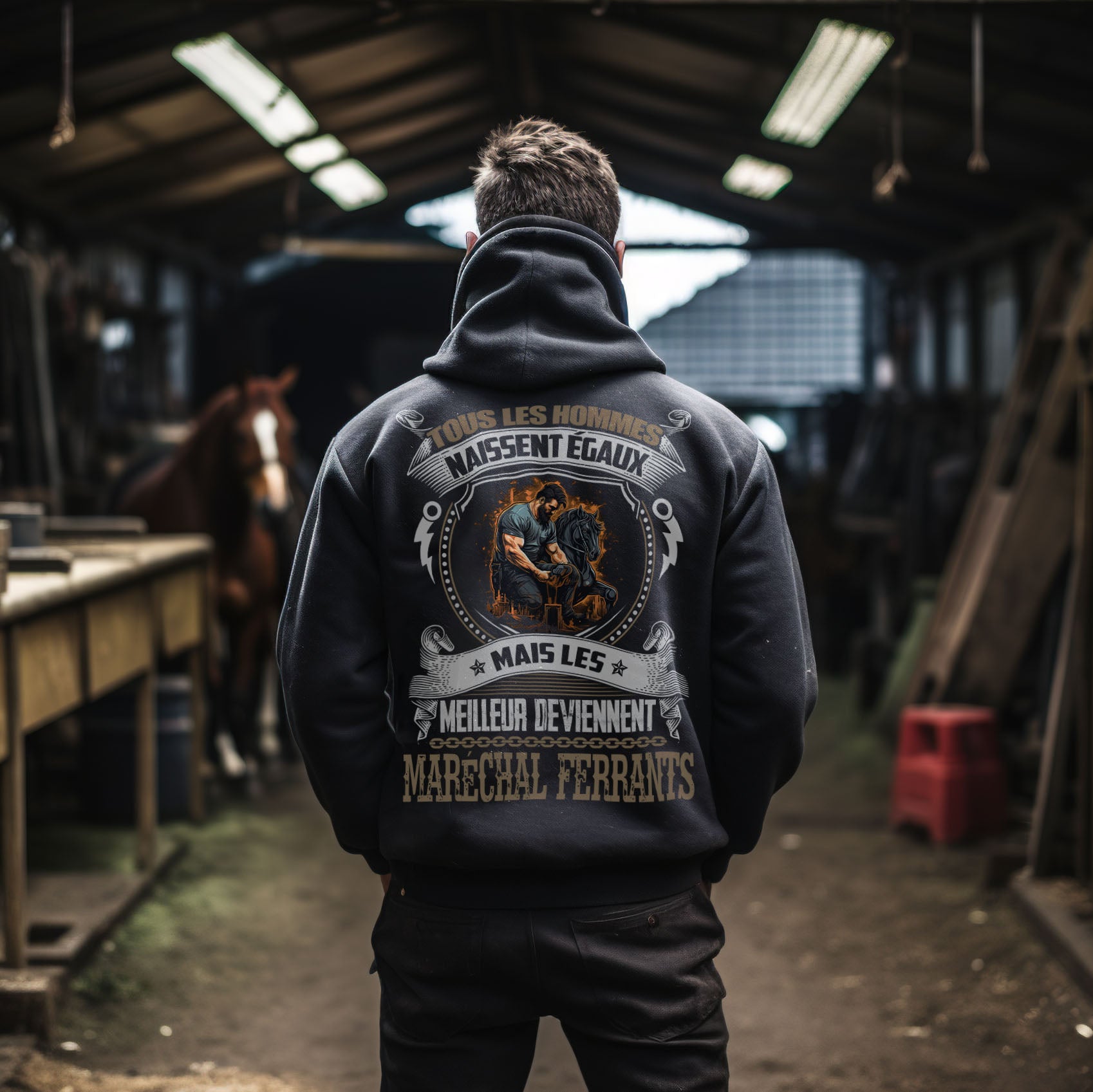Ce t-shirt arbore le message audacieux « Tous les hommes naissent égaux, mais les meilleurs deviennent Maréchal ferrant. », parfait pour tout maréchal-ferrant passionné par son travail. Le tissu doux et confortable vous gardera à l'aise toute la journée, que vous ferriez des chevaux, nettoyiez des stalles ou que vous profitiez simplement de la nature. Ce t-shirt est le moyen idéal de montrer votre fierté d'être maréchal-ferrant.