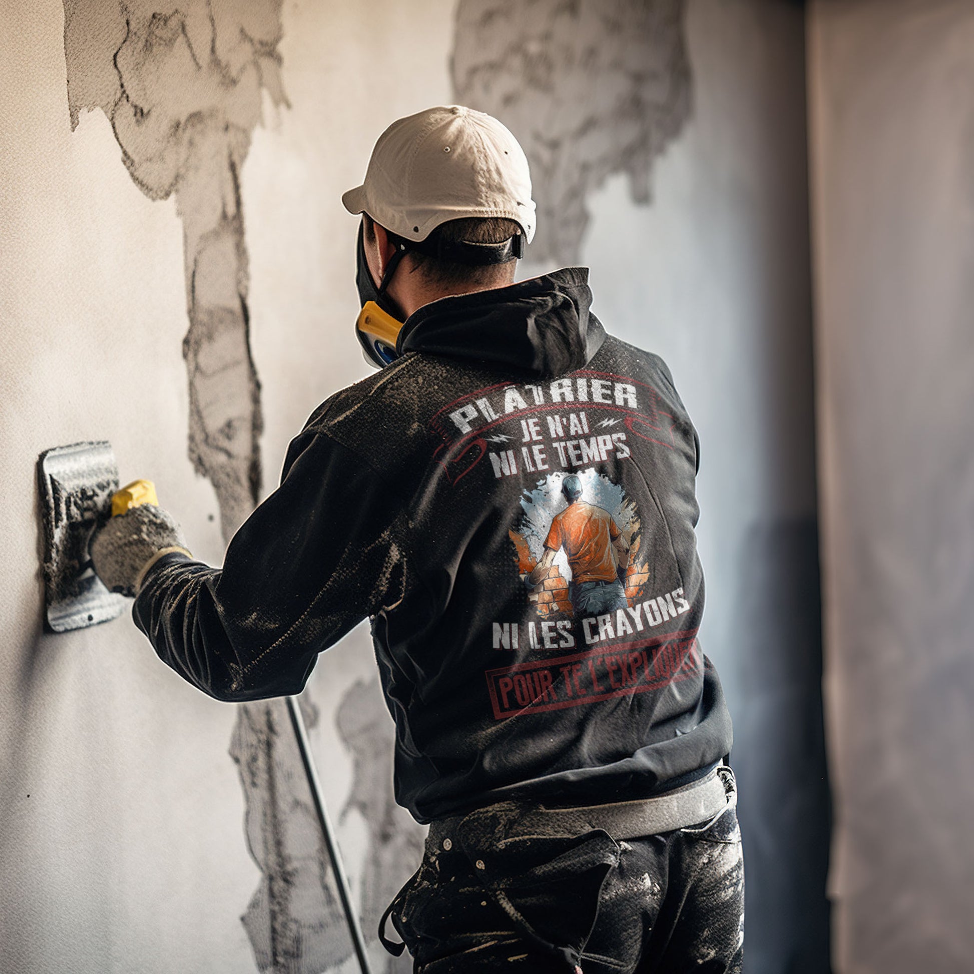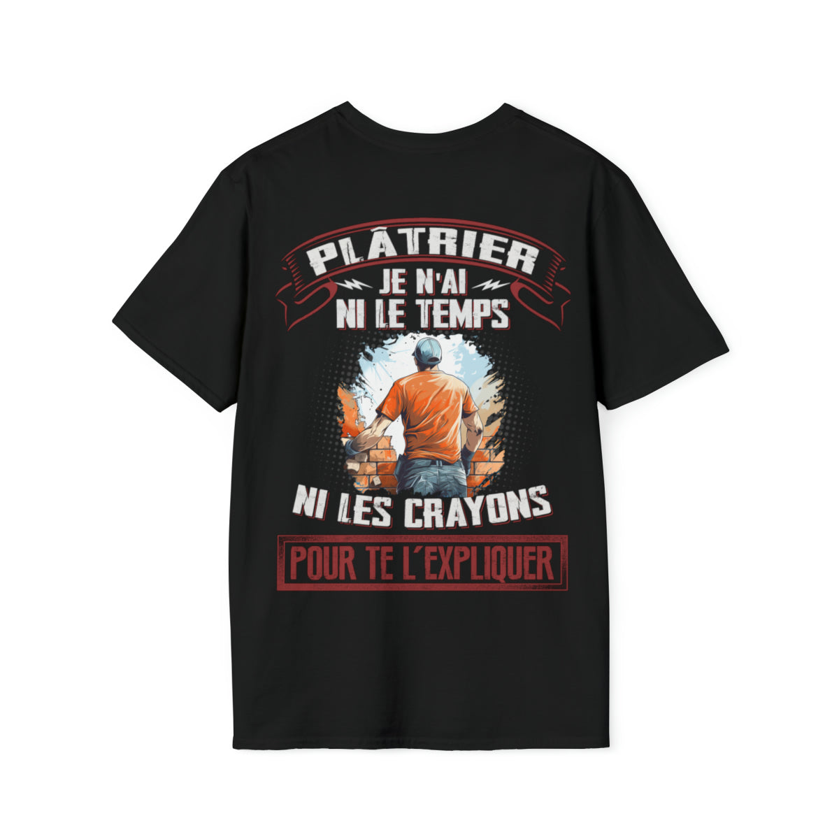 Ce t-shirt arbore le message audacieux "Plâtrier, je n'ai ni le temps ni les crayons pour te l'expliquer.", parfait pour tout plâtrier passionné par son métier. Que vous enduisiez des murs, des plafonds ou d'autres surfaces, ce t-shirt est le moyen parfait d'exprimer votre fierté d'être plâtrier.