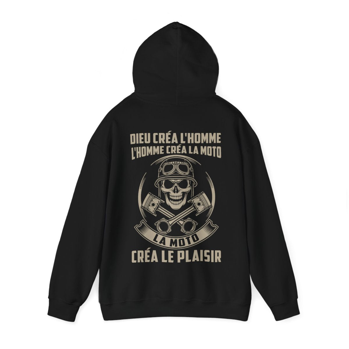 Nos vêtements sont fabriqués avec des matériaux de haute qualité, assurant confort et durabilité, même lors des longues balades sous le soleil ou à travers le vent frais. Le slogan "Dieu créa l'homme, l'homme créa la moto, la moto créa le plaisir" est fièrement affiché, capturant l'essence de votre passion. Que vous soyez au guidon de votre moto ou que vous partagiez un moment entre amis, notre collection vous accompagne dans chaque aventure, symbolisant votre amour pour la liberté et l'aventure sur deux roues.