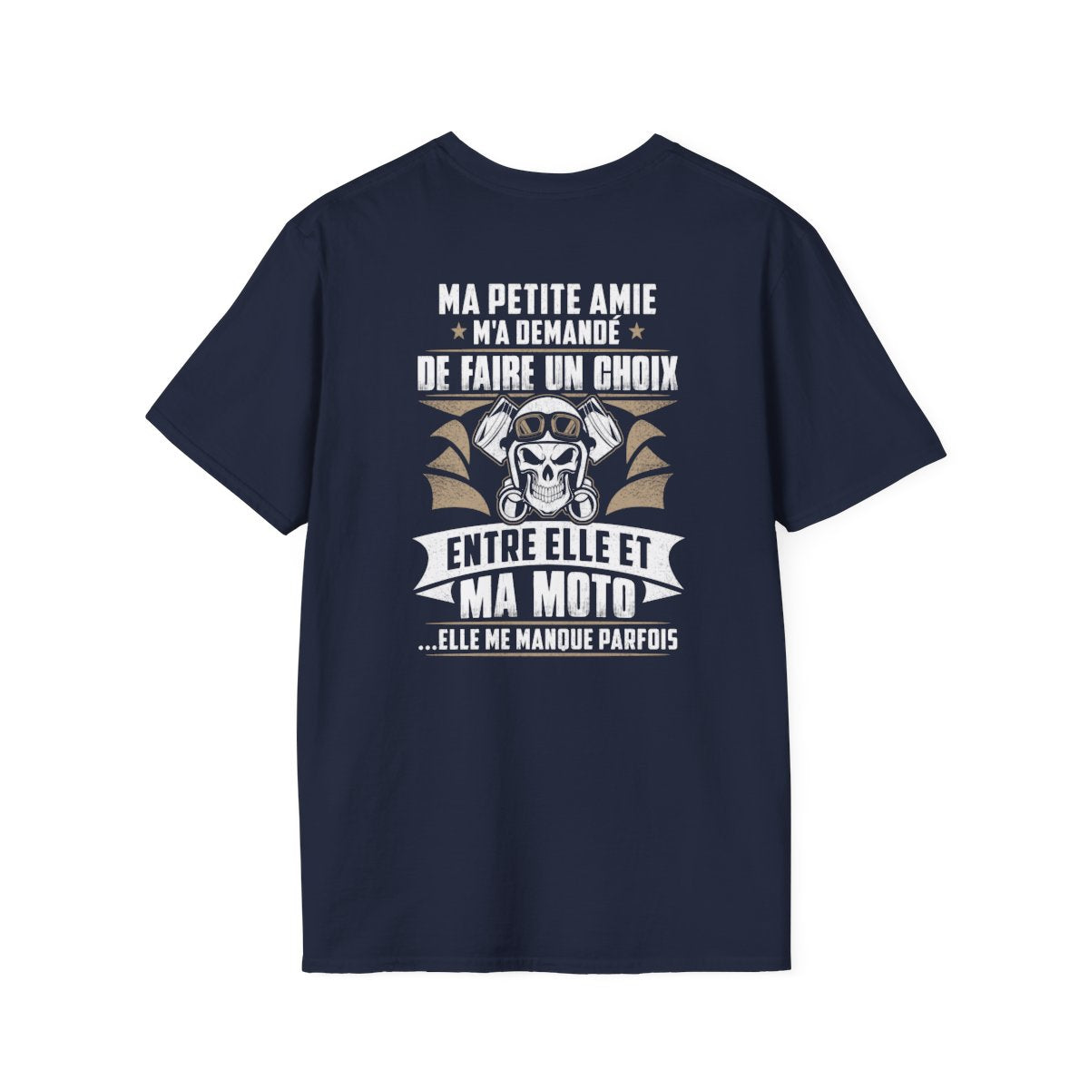 Nos vêtements sont fabriqués avec des matériaux de haute qualité, assurant confort et durabilité, même lors des longues balades sous le soleil ou à travers le vent frais. Le slogan "Ma petite amie m'a demandé de faire un choix entre elle et ma moto" est fièrement affiché, capturant l'essence de votre passion. Que vous soyez au guidon de votre moto ou que vous partagiez un moment entre amis, notre collection vous accompagne dans chaque aventure, symbolisant votre amour pour la liberté et l'aventure sur deux roues.
