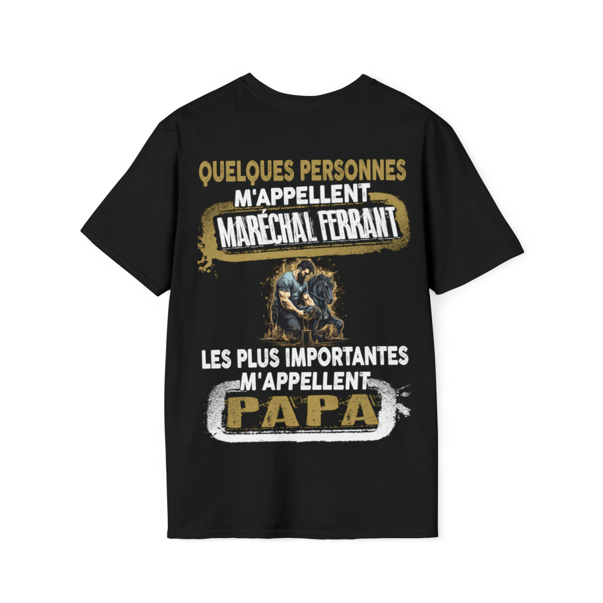 Ce t-shirt arbore le message audacieux « Quelques personnes m'appellent Maréchal ferrant, les plus importantes m'appellent papa. », parfait pour tout maréchal-ferrant passionné par son travail. Le tissu doux et confortable vous gardera à l'aise toute la journée, que vous ferriez des chevaux, nettoyiez des stalles ou que vous profitiez simplement de la nature. Ce t-shirt est le moyen idéal de montrer votre fierté d'être maréchal-ferrant.