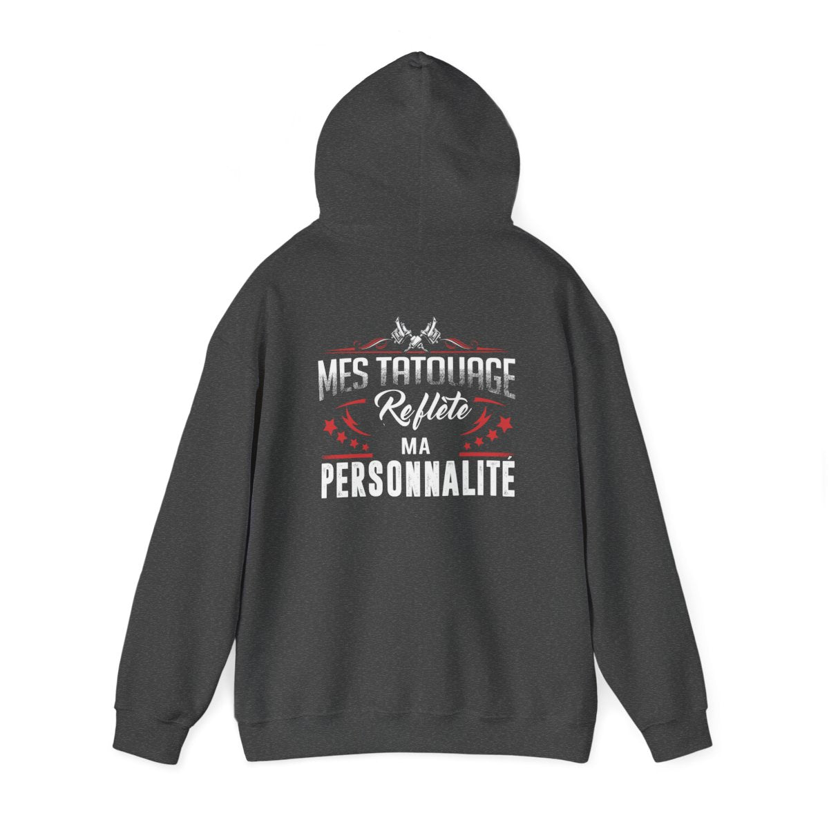 Exprimez votre fierté avec notre T-shirt et hoodie exclusifs. Imprimé avec le message audacieux "Mes tatouage reflète ma personnalité", chaque pièce célèbre votre individualité. Fabriqués avec soin pour un confort optimal, nos vêtements sont parfaits pour les hommes tatoués qui affirment leur style avec assurance.