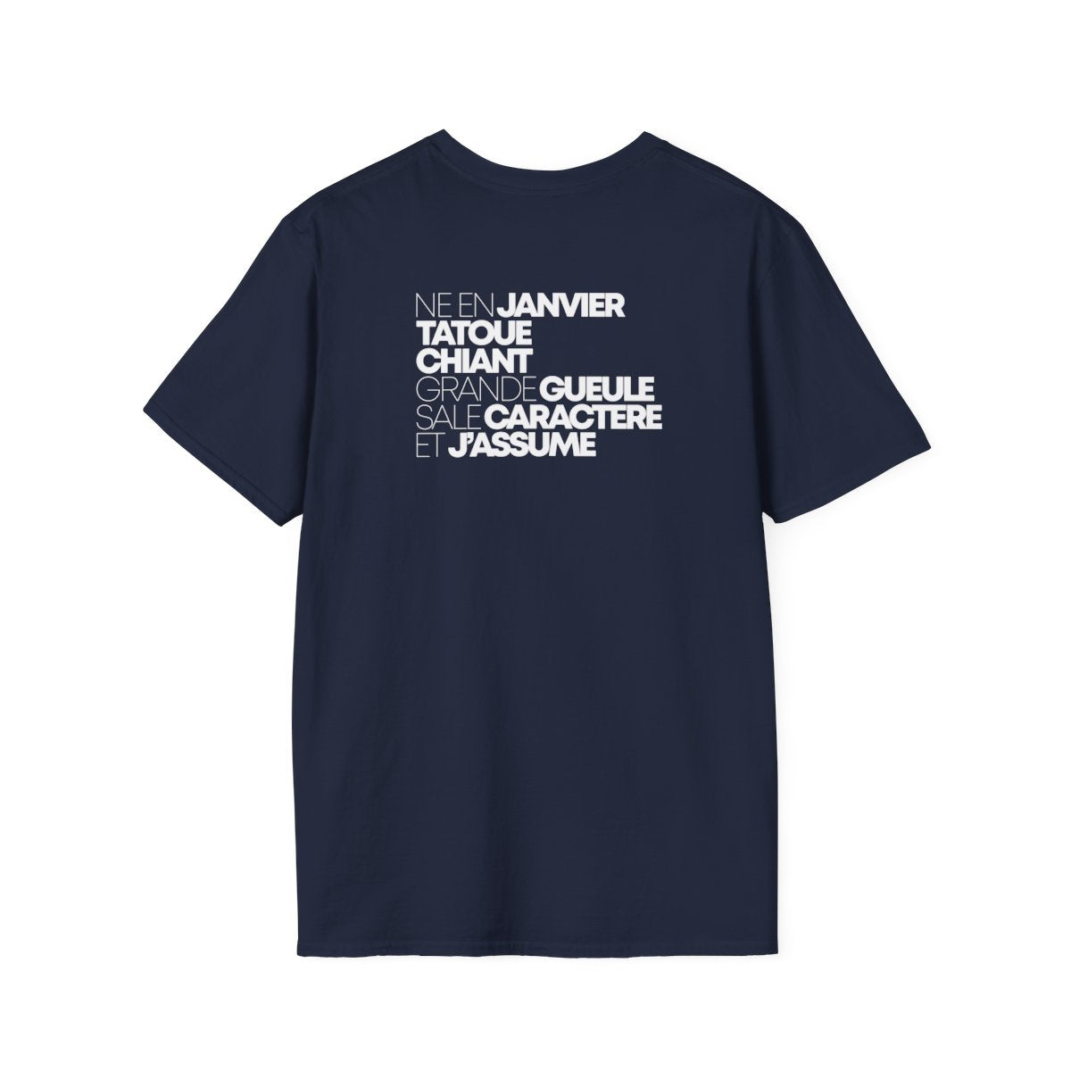 Exprimez votre fierté avec notre T-shirt et hoodie exclusifs. Imprimé avec le message audacieux "Né en janvier, tatoué, chiant, grande gueule, sale caractère et j'assume", chaque pièce célèbre votre individualité. Fabriqués avec soin pour un confort optimal, nos vêtements sont parfaits pour les hommes tatoués qui affirment leur style avec assurance.