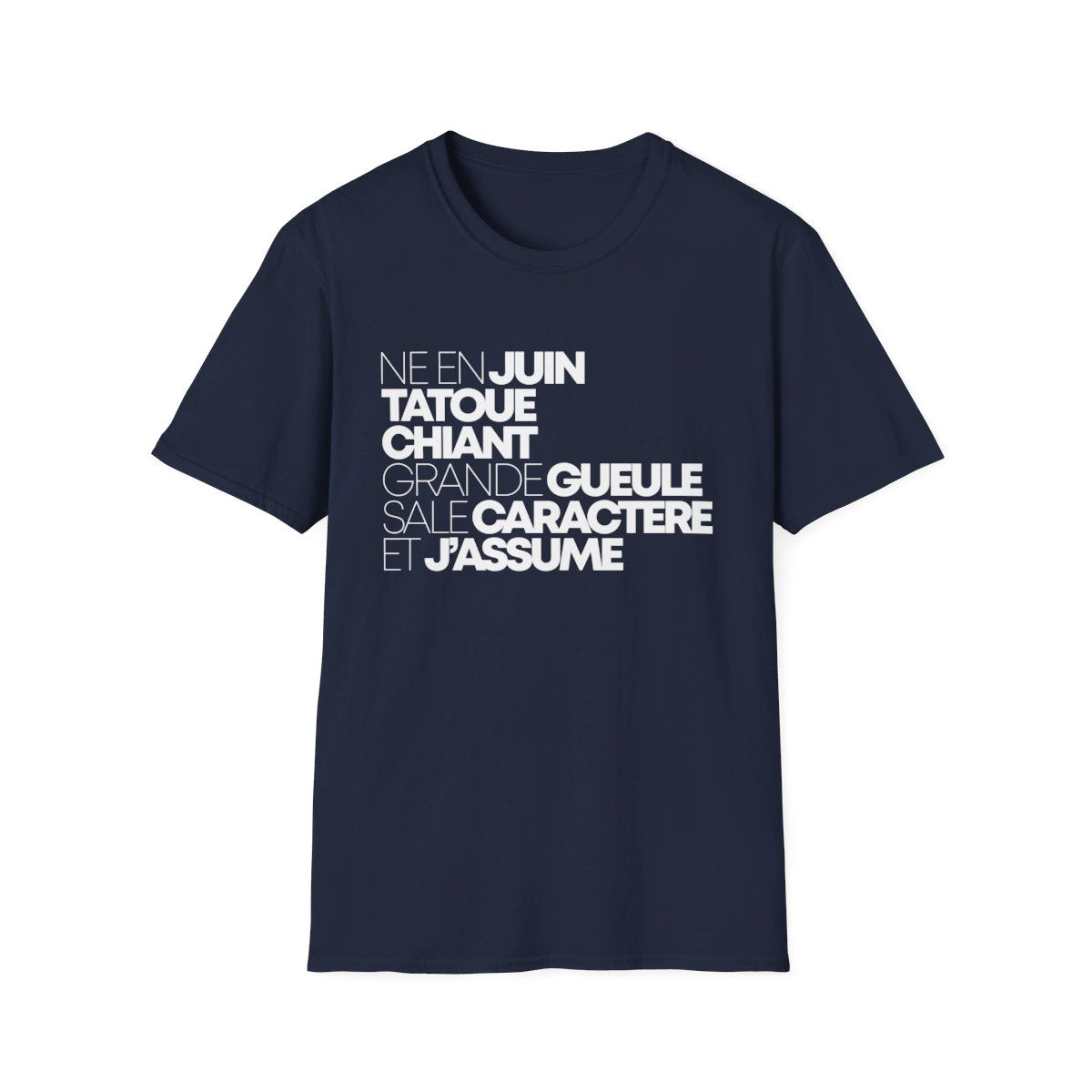 Exprimez votre style unique avec ce t-shirt pour hommes spécialement conçu pour les amateurs de tatouages. Arborant un design audacieux qui met en valeur l'art corporel, ce t-shirt est le choix parfait pour ceux qui vivent et respirent la culture du tatouage. Fait d'un coton doux et respirant, il assure un confort optimal tout au long de la journée. Que vous soyez un passionné de tatouages ou que vous souhaitiez simplement afficher votre côté rebelle, ce t-shirt est un incontournable. Né en juin, tatoué, chiant, grande gueule, sale caractère et j'assume