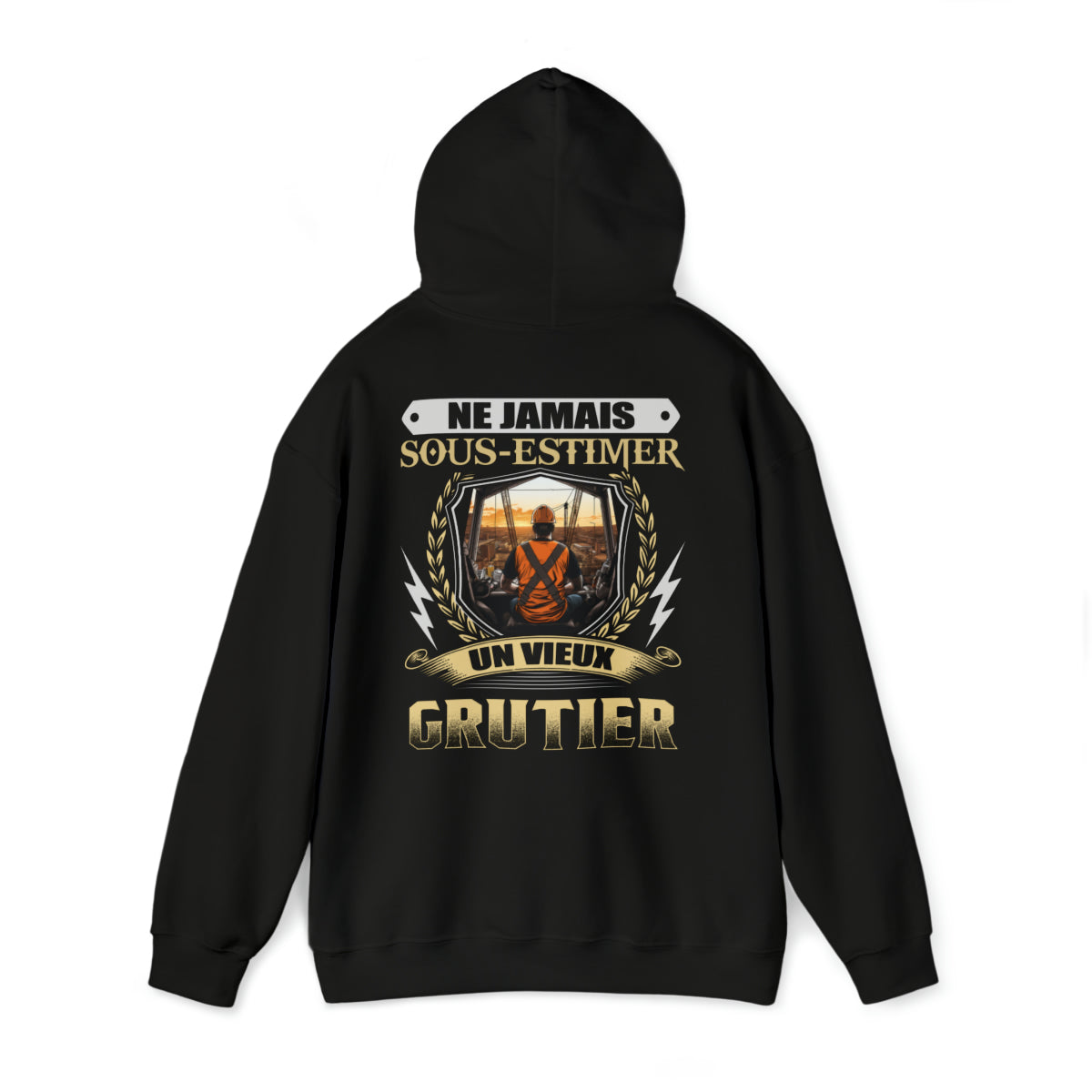 Le message sur le t-shirt est simple mais efficace : "Ne jamais sous-estimer un vieux Grutier.". C'est un excellent moyen de montrer votre amour pour votre profession et de faire savoir aux autres que vous êtes confiant dans vos compétences.