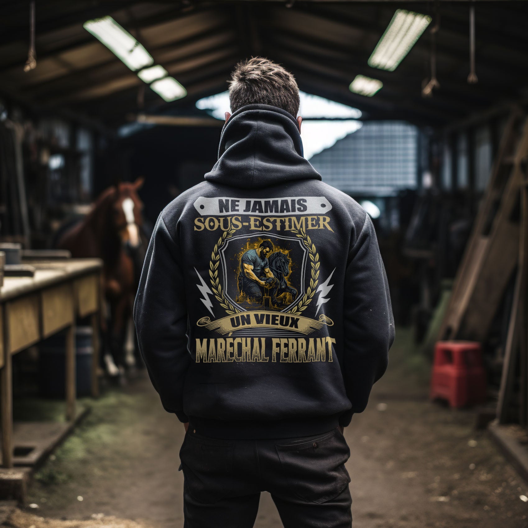 Ce t-shirt arbore le message audacieux « Ne jamais sous-estimer un vieux Maréchal ferrant. », parfait pour tout maréchal-ferrant passionné par son travail. Le tissu doux et confortable vous gardera à l'aise toute la journée, que vous ferriez des chevaux, nettoyiez des stalles ou que vous profitiez simplement de la nature. Ce t-shirt est le moyen idéal de montrer votre fierté d'être maréchal-ferrant.