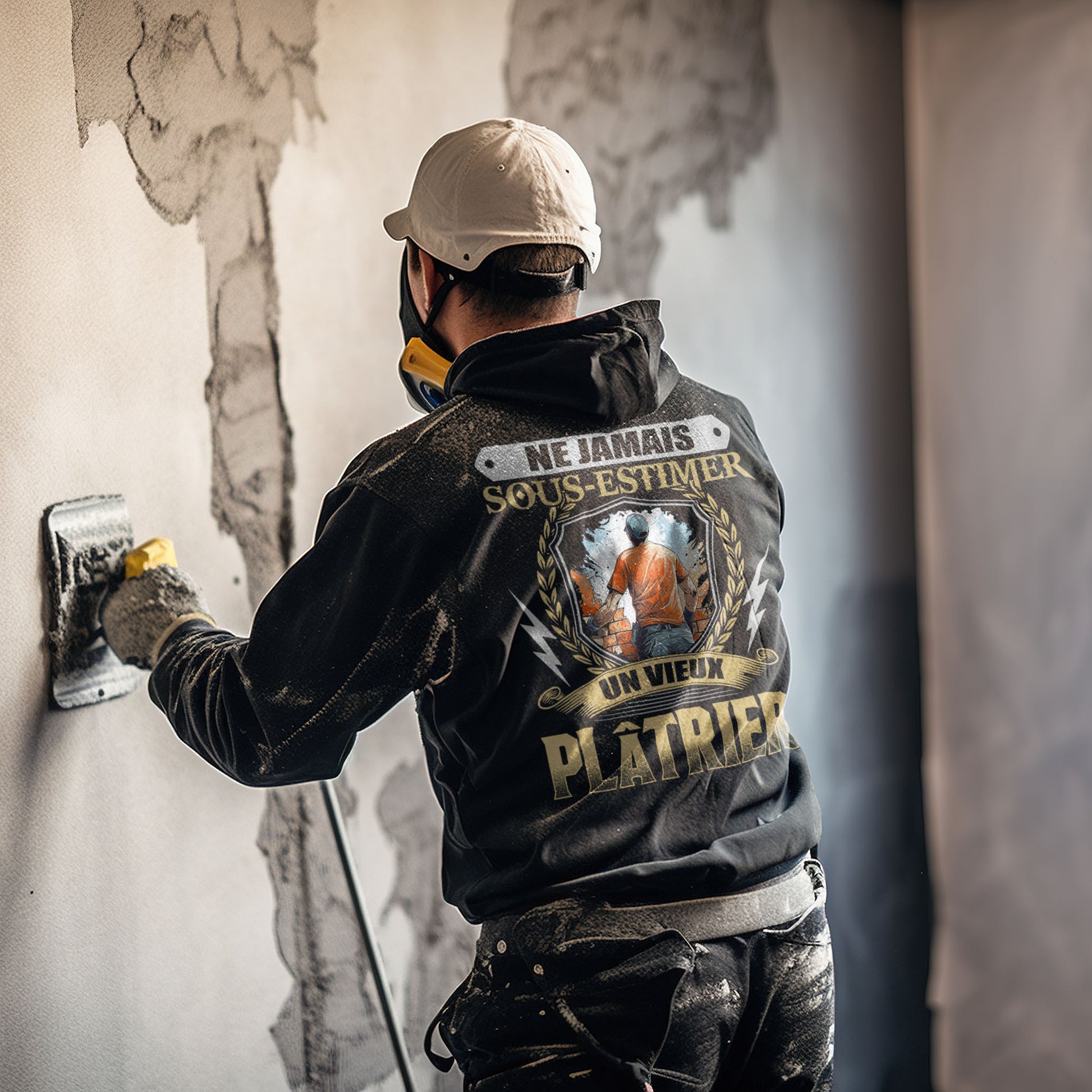 Ce t-shirt arbore le message audacieux "Ne jamais sous-estimer un vieux Plâtrier.", parfait pour tout plâtrier passionné par son métier. Que vous enduisiez des murs, des plafonds ou d'autres surfaces, ce t-shirt est le moyen parfait d'exprimer votre fierté d'être plâtrier.