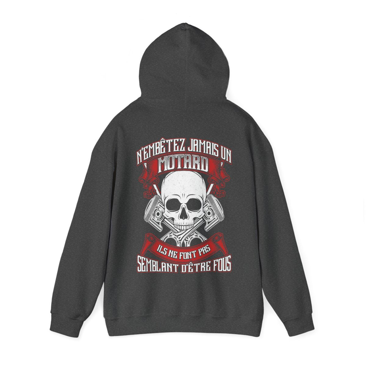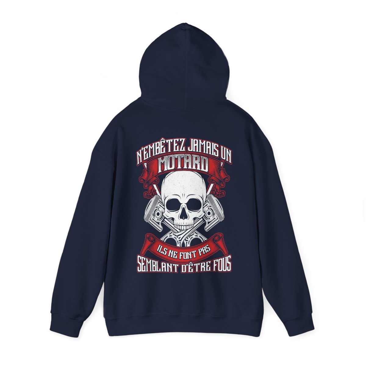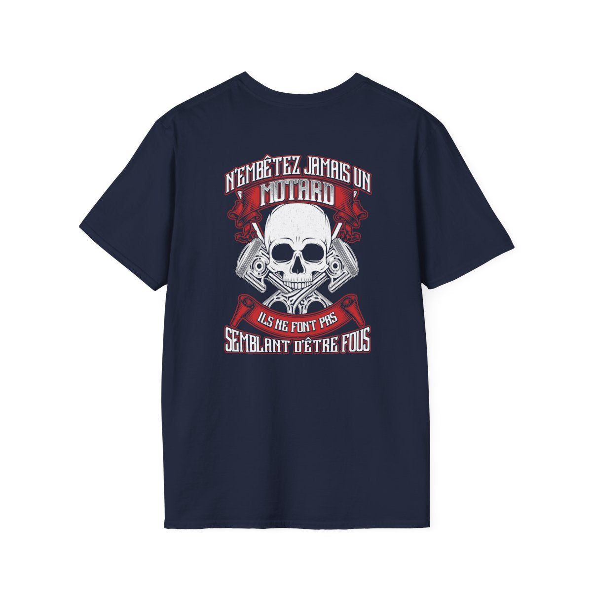 Nos vêtements sont fabriqués avec des matériaux de haute qualité, assurant confort et durabilité, même lors des longues balades sous le soleil ou à travers le vent frais. Le slogan "N'embêtez jamais un motard ils ne font pas semblant d'être fous" est fièrement affiché, capturant l'essence de votre passion. Que vous soyez au guidon de votre moto ou que vous partagiez un moment entre amis, notre collection vous accompagne dans chaque aventure, symbolisant votre amour pour la liberté et l'aventure sur deux roues.