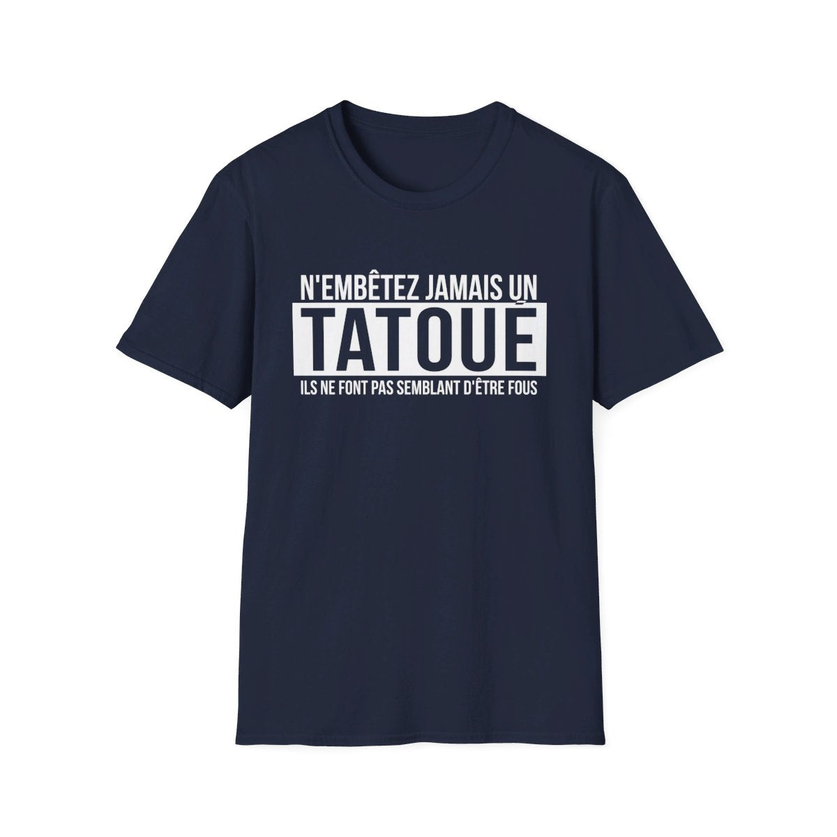 Exprimez votre style unique avec ce t-shirt pour hommes spécialement conçu pour les amateurs de tatouages. Arborant un design audacieux qui met en valeur l'art corporel, ce t-shirt est le choix parfait pour ceux qui vivent et respirent la culture du tatouage. Fait d'un coton doux et respirant, il assure un confort optimal tout au long de la journée. Que vous soyez un passionné de tatouages ou que vous souhaitiez simplement afficher votre côté rebelle, ce t-shirt est un incontournable. N'embêtez jamais un tatoué. ils ne font pas semblant d'être fous