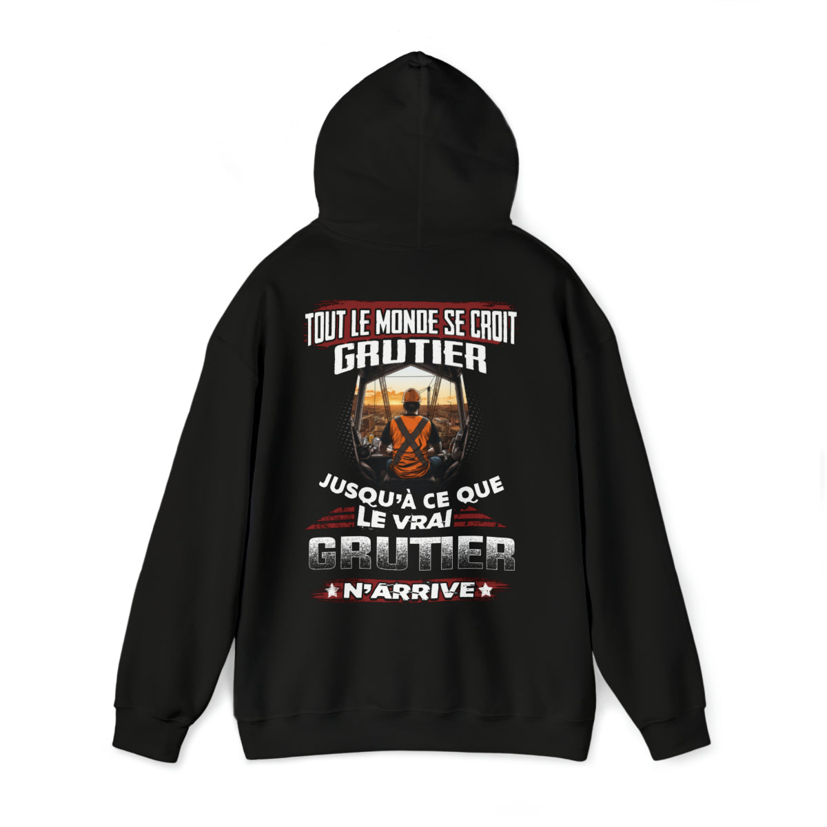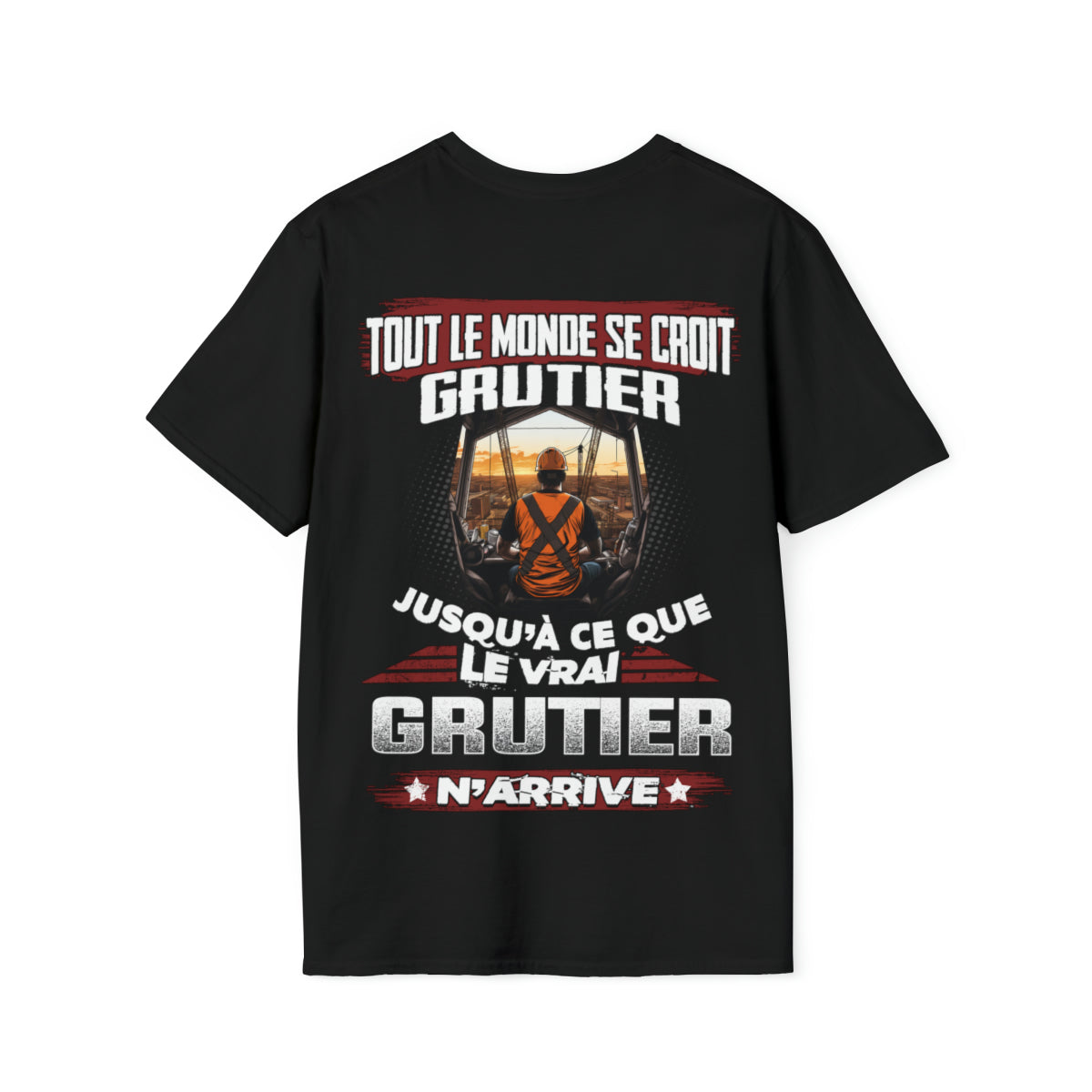 Le message sur le t-shirt est simple mais efficace : "Tout le monde se croit Grutier, jusqu'à ce que le vrai Grutier n'arrive.". C'est un excellent moyen de montrer votre amour pour votre profession et de faire savoir aux autres que vous êtes confiant dans vos compétences.