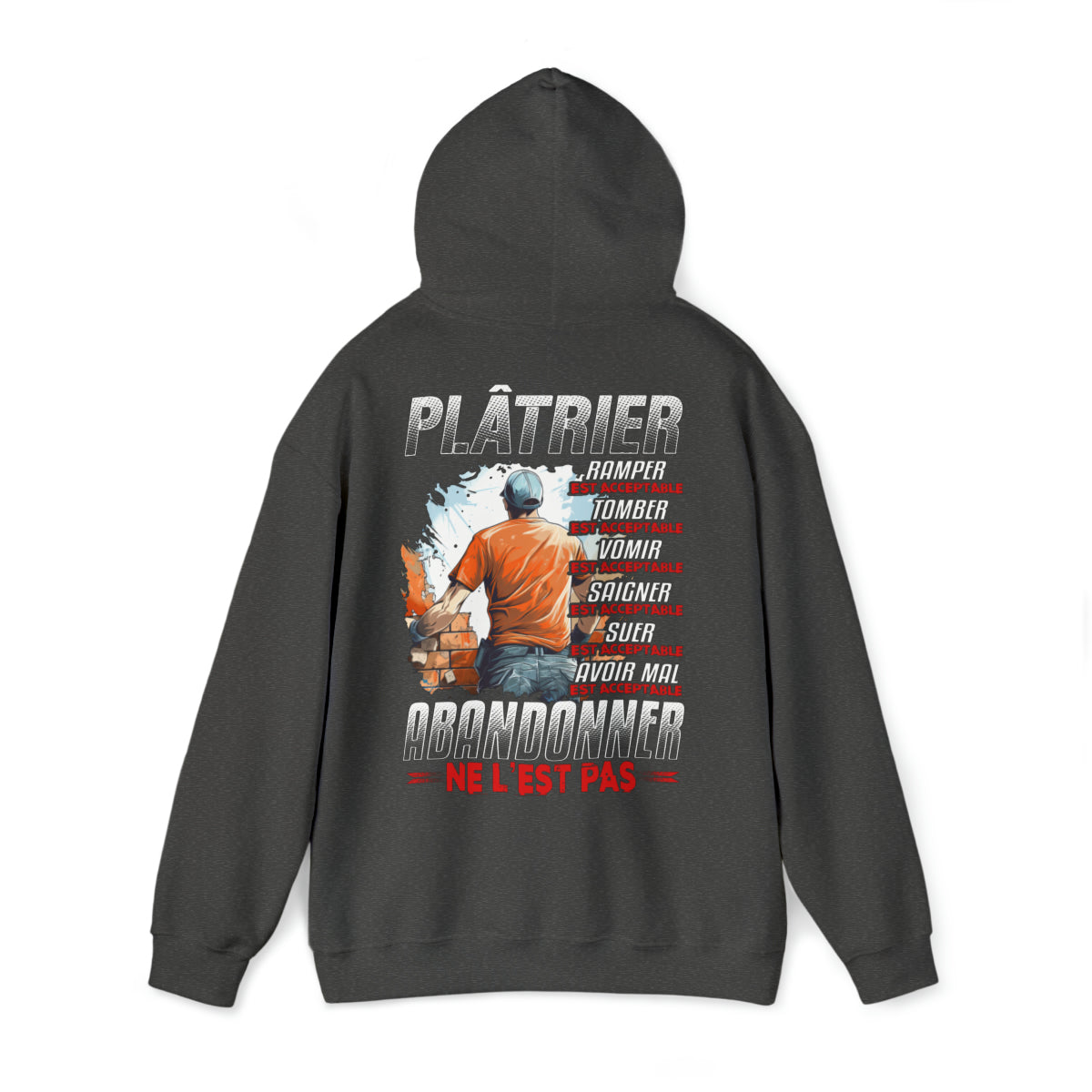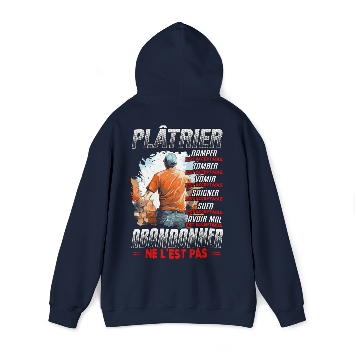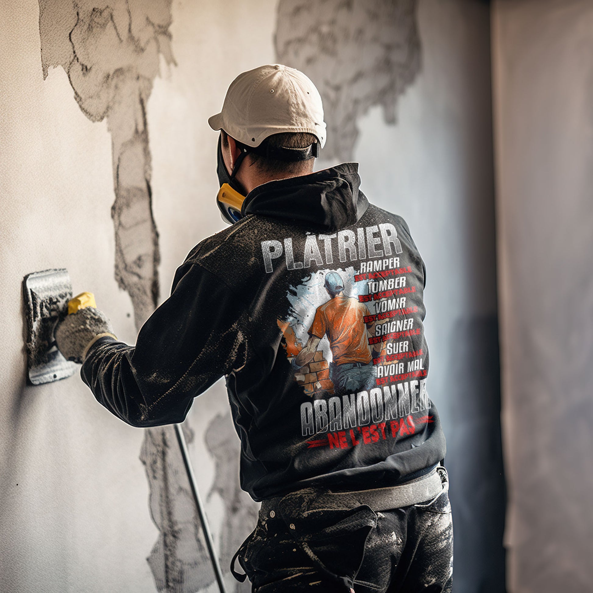 Ce t-shirt arbore le message audacieux "Plâtrier, ramper, tomber, vomir, saigner, suer, avoir mal est acceptable, abandonner ne l'est pas.", parfait pour tout plâtrier passionné par son métier. Que vous enduisiez des murs, des plafonds ou d'autres surfaces, ce t-shirt est le moyen parfait d'exprimer votre fierté d'être plâtrier.