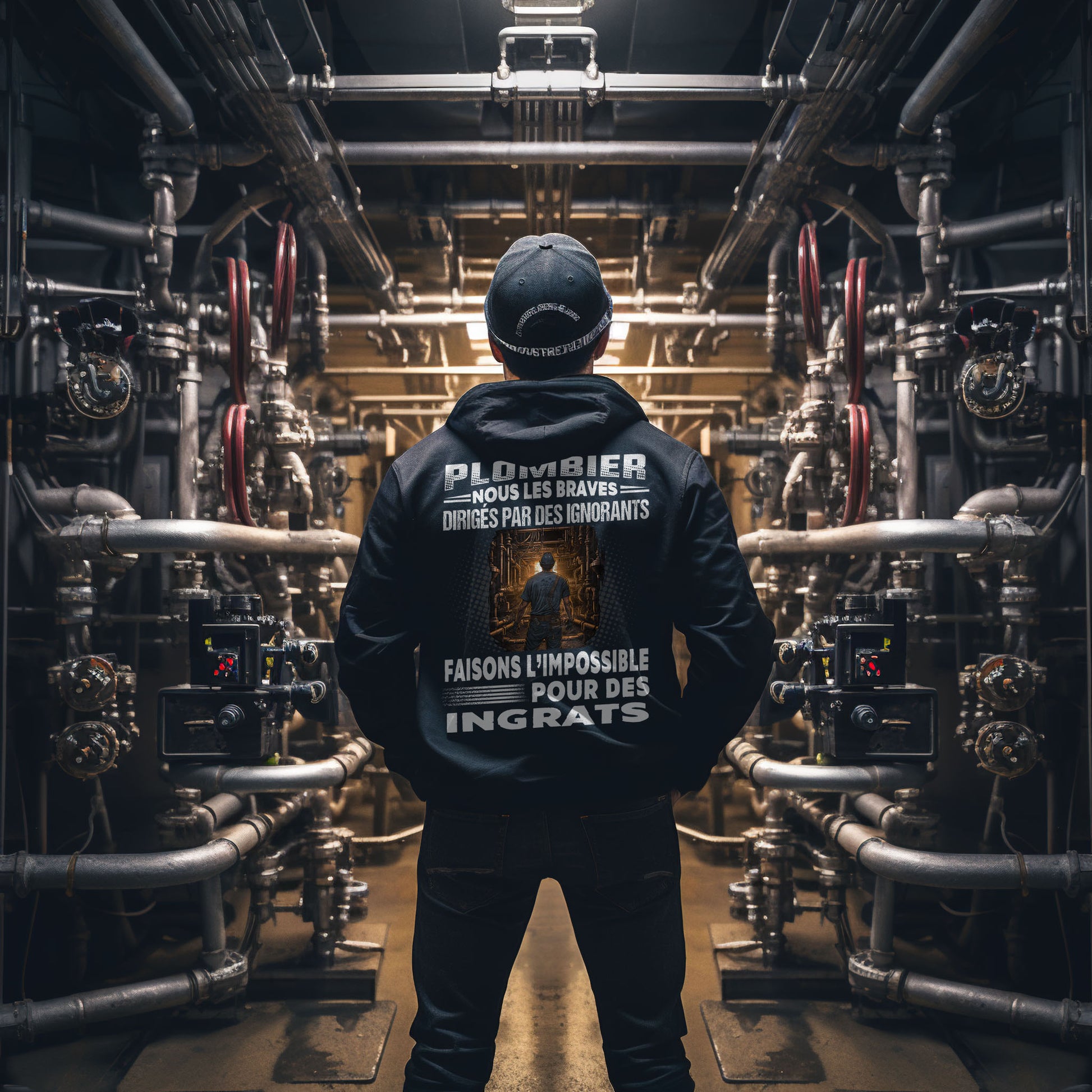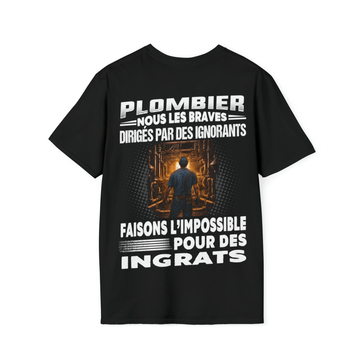 Ce t-shirt arbore le message audacieux "Plombier, les braves dirigés par des ignorants font l'impossible pour des ingrats.", parfait pour tout plombier passionné par son métier. Que vous répariez des robinets qui fuient, des toilettes bouchées ou des tuyaux cassés, ce t-shirt est le moyen parfait d'exprimer votre fierté d'être plombier.