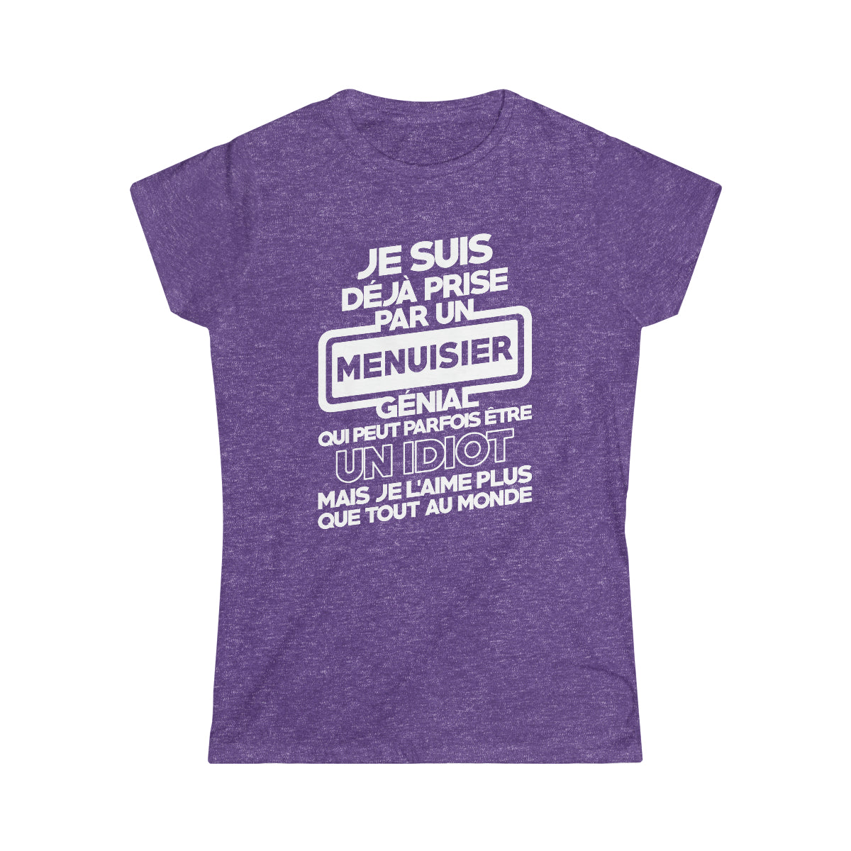 Découvrez notre t-shirt et sweat à capuche conçu spécialement pour les compagnes et épouses de menuisiers, célébrant l'habileté et la créativité de cet artisanat ancestral. Portant le message "Je suis déjà prise par un Menuisier génial qui peut parfois être un idiot mais je l'aime plus que tout au monde", ce vêtement est un hommage à l'amour et au soutien que ces femmes apportent à leurs partenaires, artisans du bois.