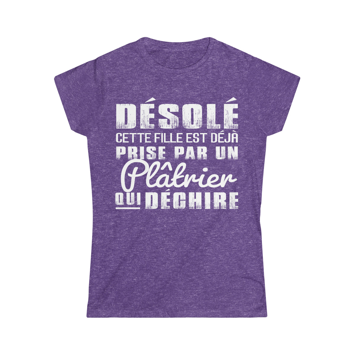 Découvrez notre t-shirt et sweat à capuche conçu spécialement pour les femmes des plâtriers, en hommage à la précision et à l'art du travail du plâtre. Avec le message "Désolé cette fille est déjà prise par un Plâtrier qui déchire", ce vêtement célèbre le savoir-faire et la minutie de ces professionnels qui façonnent l'esthétique de nos intérieurs.