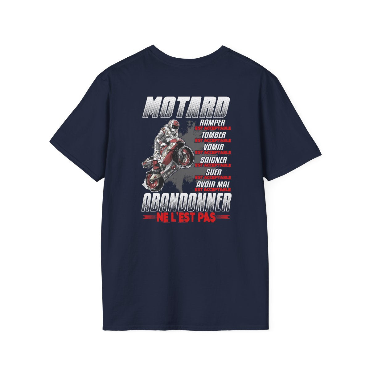 Nos vêtements sont fabriqués avec des matériaux de haute qualité, assurant confort et durabilité, même lors des longues balades sous le soleil ou à travers le vent frais. Le slogan "Ramper, tomber, vomir, saigner, suer, avoir mal est acceptable, abandonner ne l'est pas" est fièrement affiché, capturant l'essence de votre passion. Que vous soyez au guidon de votre moto ou que vous partagiez un moment entre amis, notre collection vous accompagne dans chaque aventure, symbolisant votre amour pour la liberté et l'aventure sur deux roues.