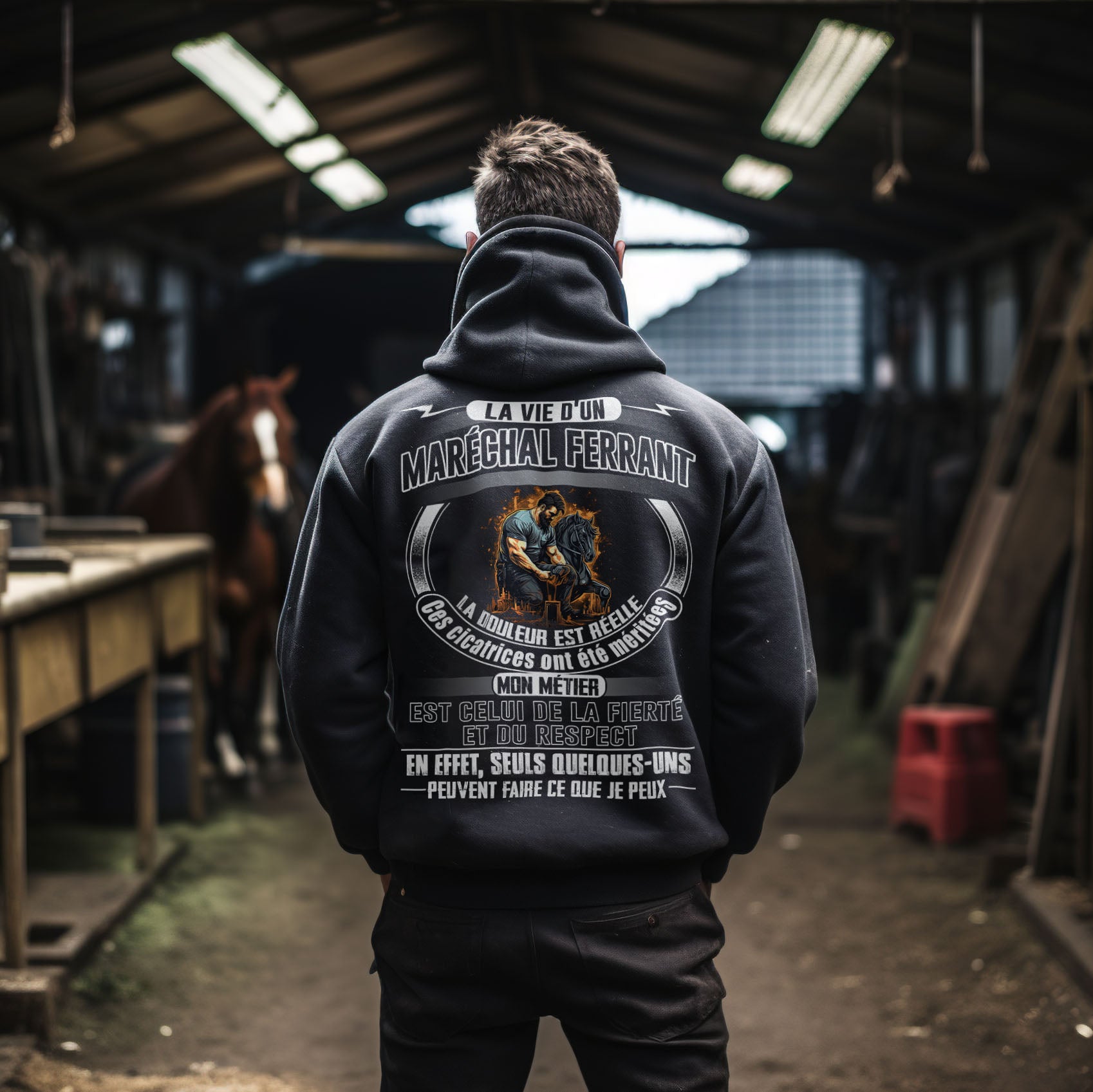 Ce t-shirt arbore le message audacieux « La vie d'un Maréchal ferrant, la douleur est réelle, ces cicatrices ont été méritées. Mon métier est celui de la fierté et du respect. En effet, seuls quelques-uns peuvent faire ce que je peux. », parfait pour tout maréchal-ferrant passionné par son travail. Le tissu doux et confortable vous gardera à l'aise toute la journée, que vous ferriez des chevaux, nettoyiez des stalles ou que vous profitiez simplement de la nature. Ce t-shirt est le moyen idéal de montrer votre fierté d'être maréchal-ferrant.