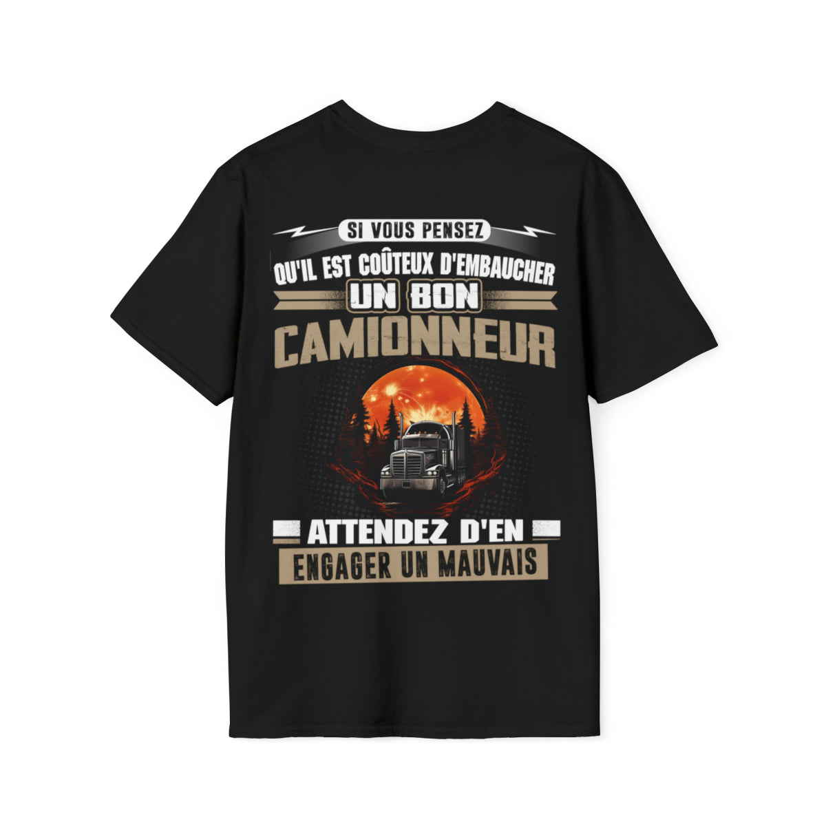 Ce t-shirt arbore le message audacieux "Si vous pensez qu'il est coûteux d'embaucher un bon Camionneur, attendez d'en engager un mauvais.", parfait pour tout camionneur passionné par son métier. Que vous transportiez des marchandises à travers le pays ou que vous livriez des colis à votre communauté locale, ce t-shirt est le moyen parfait d'exprimer votre fierté d'être camionneur.