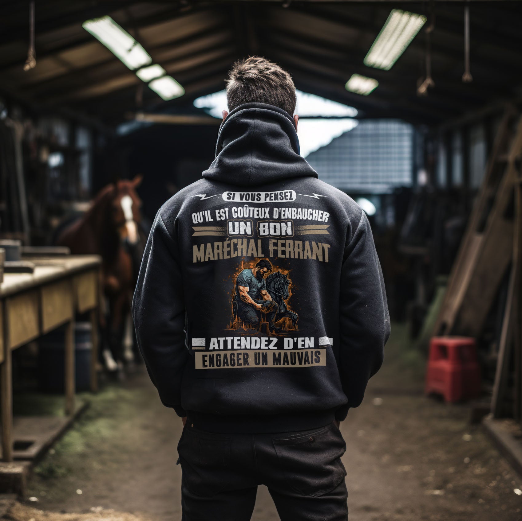 Soyez fier de ce que vous faites ! Les maréchal-ferrants sont les héros méconnus du monde équestre. Ils travaillent dur pour garder les chevaux en bonne santé et confortables, et ils prennent grand soin de leur travail. Ce t-shirt est un excellent moyen de montrer votre fierté d'être maréchal-ferrant et de faire savoir à tout le monde que vous êtes passionné par votre travail.