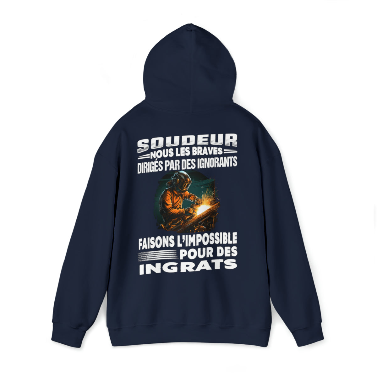 Ce t-shirt porte le message audacieux "Soudeur, les braves dirigés par des ignorants font l'impossible pour des ingrats.", parfait pour tout soudeur passionné par son travail. Que vous soudiez des ponts, des bâtiments ou des navires, ce t-shirt est le moyen idéal de montrer votre fierté d'être soudeur.