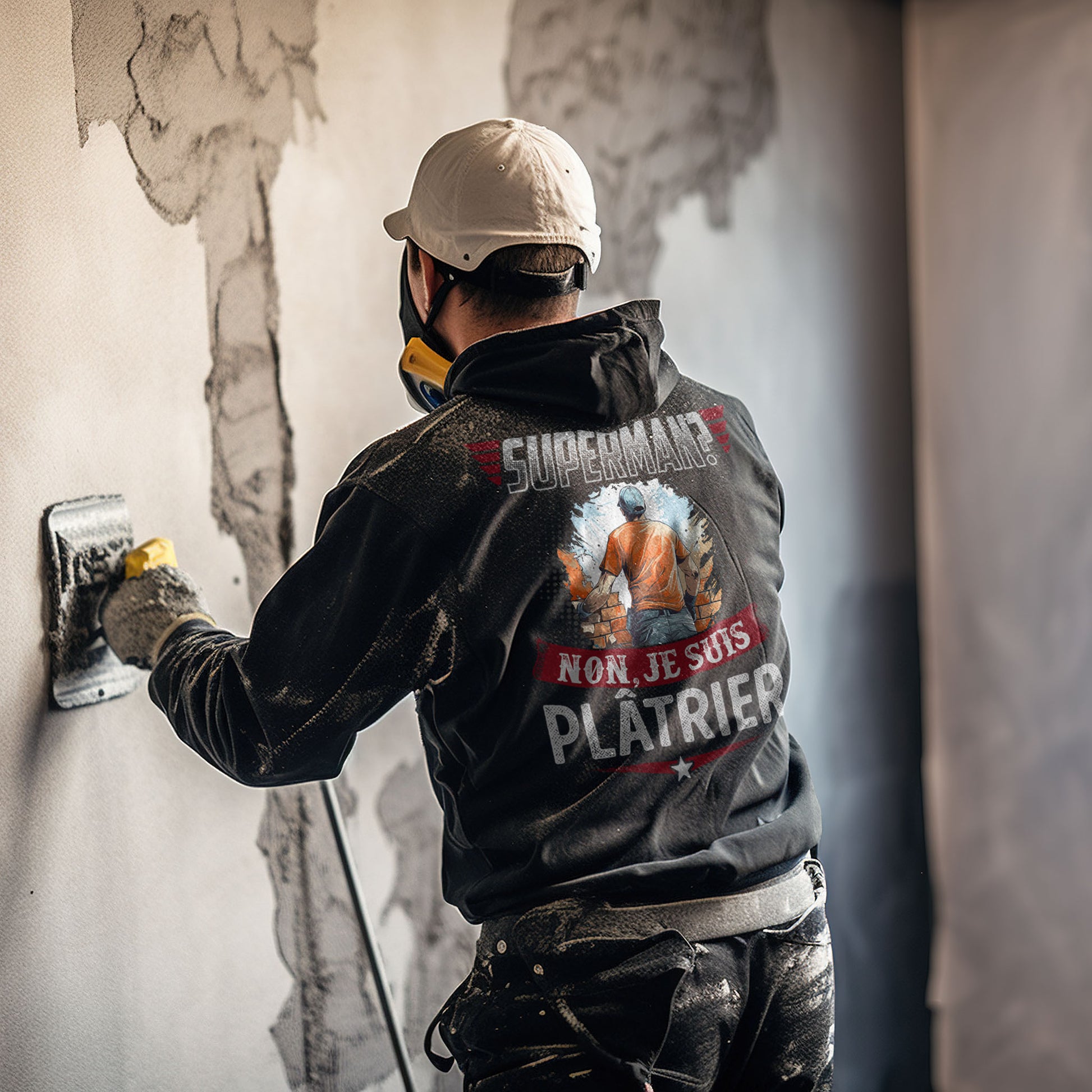 Ce t-shirt arbore le message audacieux "Superman ? Non, je suis Plâtrier", parfait pour tout plâtrier passionné par son métier. Que vous enduisiez des murs, des plafonds ou d'autres surfaces, ce t-shirt est le moyen parfait d'exprimer votre fierté d'être plâtrier.