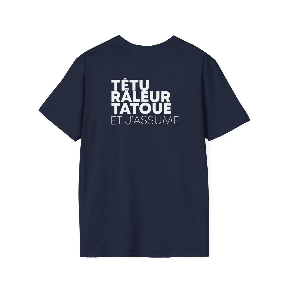 Exprimez votre fierté avec notre T-shirt et hoodie exclusifs. Imprimé avec le message audacieux "Têtu Râleur Tatoué et j'assume", chaque pièce célèbre votre individualité. Fabriqués avec soin pour un confort optimal, nos vêtements sont parfaits pour les hommes tatoués qui affirment leur style avec assurance.